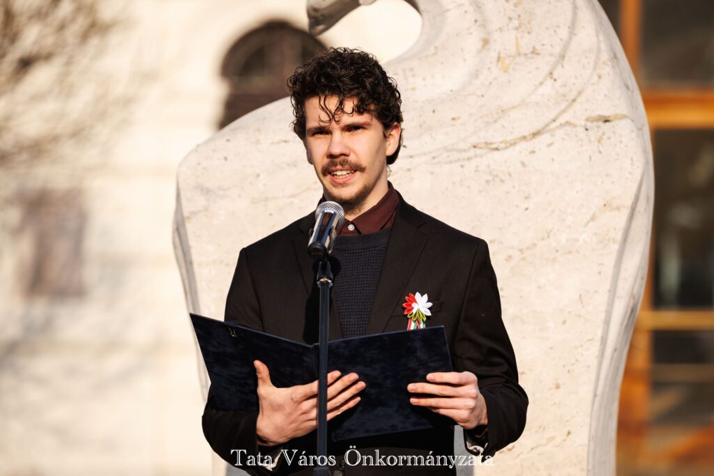 Az eseményen megemlékeztek a tatai Hamary Dániel orvos, honvéd tüzér hadnagyról, az 1848-49-es forradalom és szabadságharc legismertebb tatai közreműködőjéről, aki 200 évvel ezelőtt született, majd Michl József mondott beszédet. Tata polgármestere kiemelte: – Hamary Dániel példája azért is nagyon jó, mert óriási dolog az, ha valaki többet tesz a puszta létnél és valamilyen plusz munkát végez, többet annál, mint, hogy minden nap bejár az iskolába. Nektek már most óriási a felelősségetek abban a közösségben, melyben nap, mint nap éltek, a barátaitok, osztálytársaitok számára felemelő példák vagytok, akik ezáltal segíthetik a többiek munkáját, ezért motiváljátok őket arra, hogy van értelme jobbnak lenni az életben.