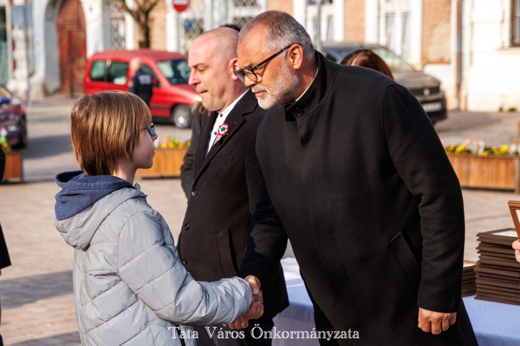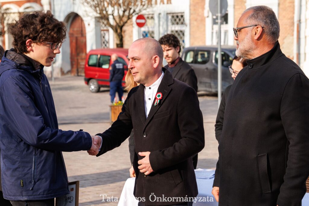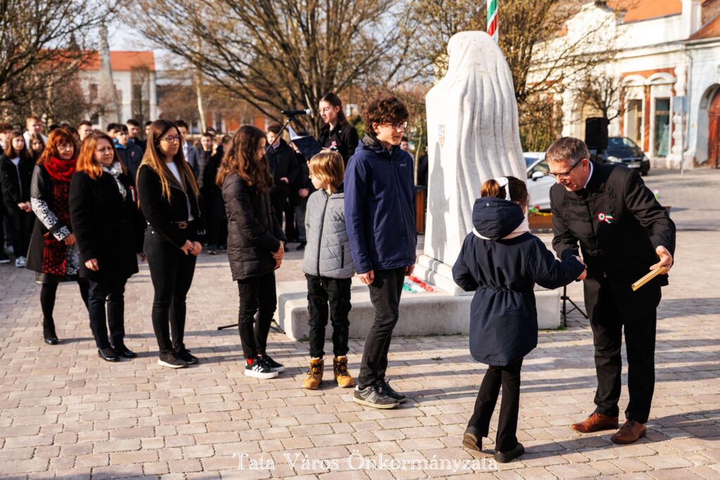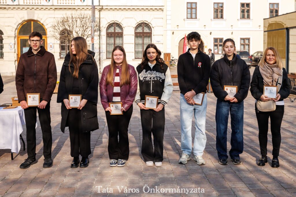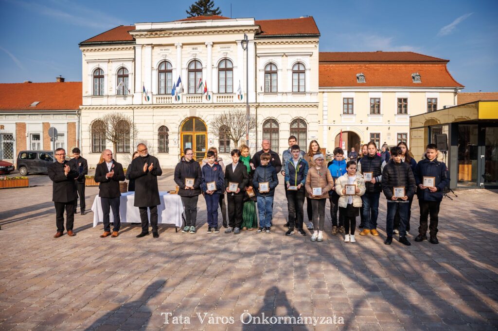 Tata Város Önkormányzata szervezésében idén is március 16-án, a magyar zászló és címer napjának reggelén adták át a tanulmányi versenyeken kiváló eredményeket elért tatai általános és középiskolásoknak, valamint felkészítőiknek városunk tanulmányi különdíját a Kossuth téren, az Országzászló-szobornál. Az elismerésben 32 diák és 22 tanár részesült.