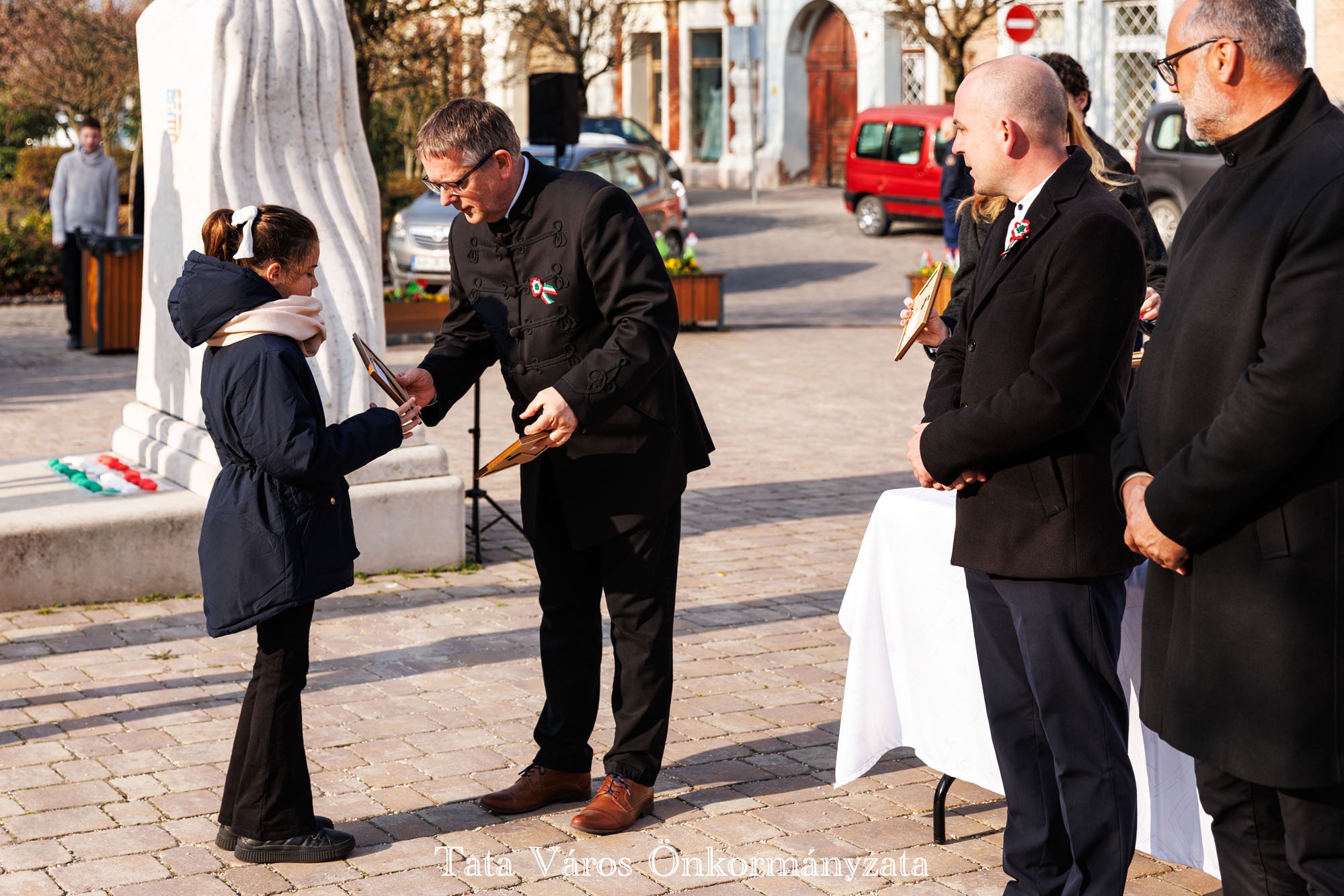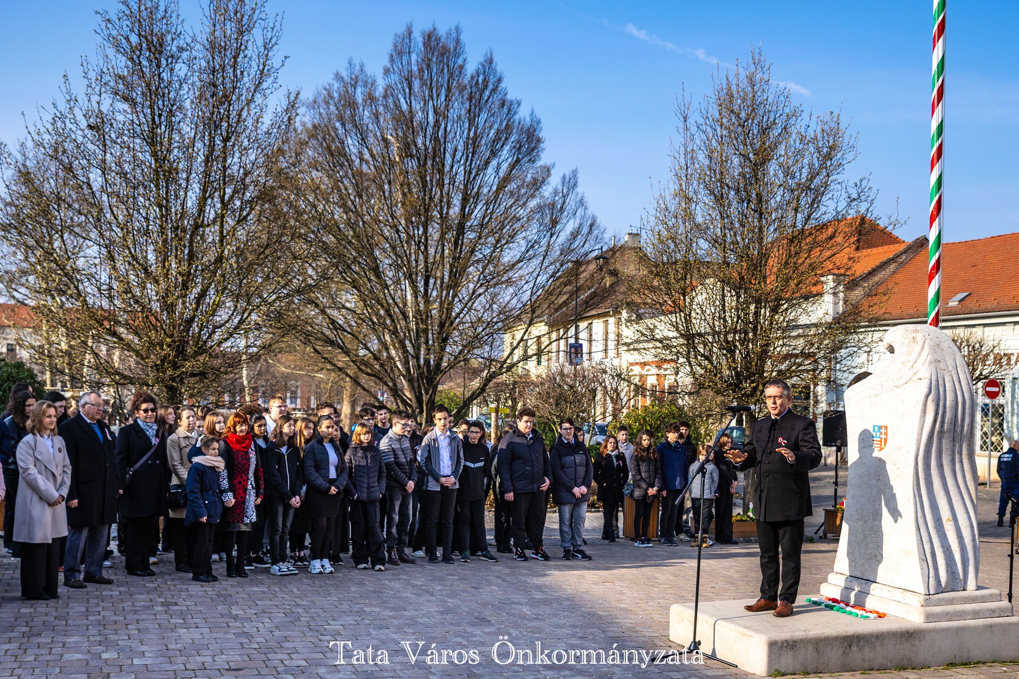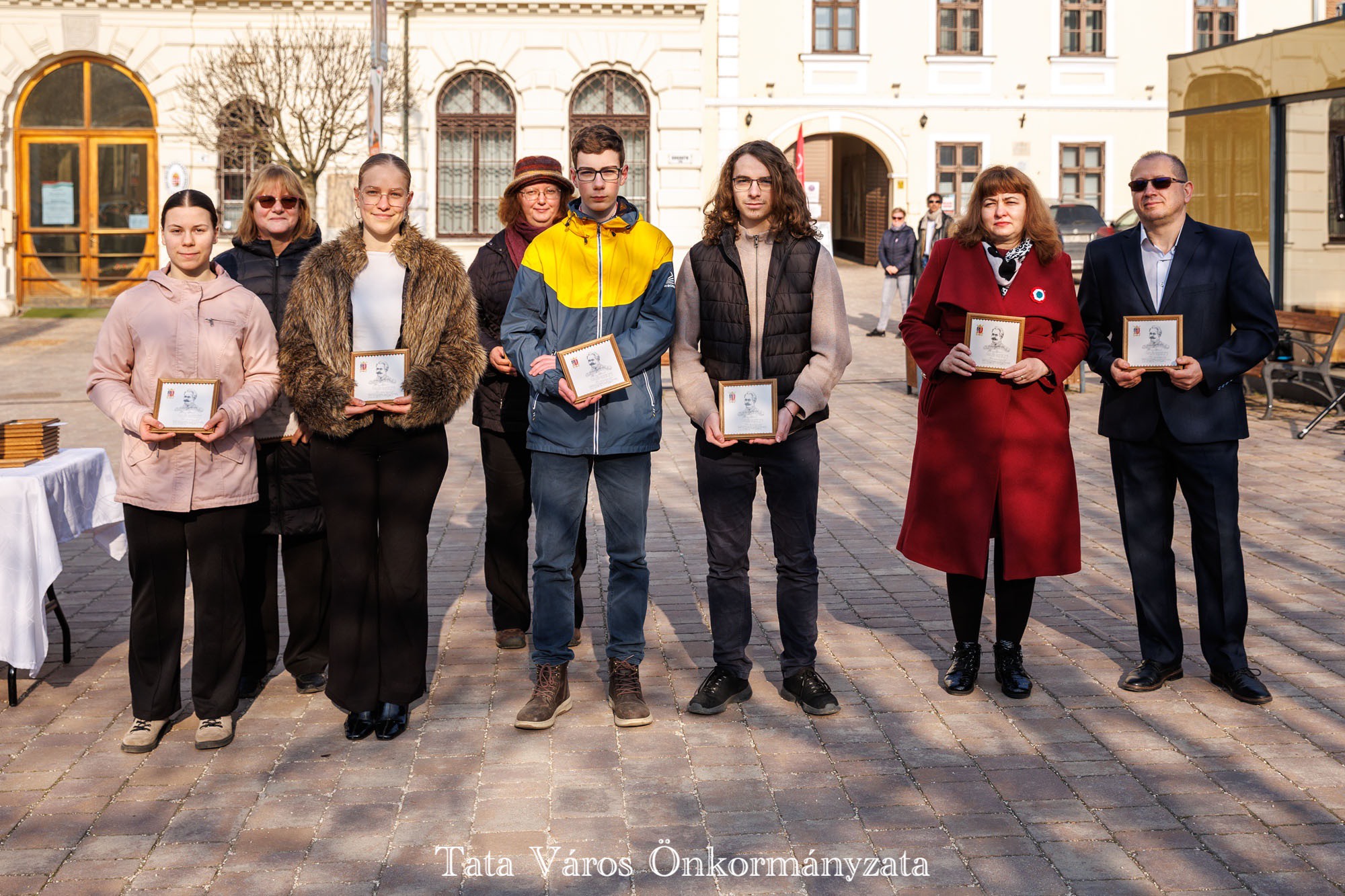 Tata Város Önkormányzata szervezésében idén is március 16-án, a magyar zászló és címer napjának reggelén adták át a tanulmányi versenyeken kiváló eredményeket elért tatai általános és középiskolásoknak, valamint felkészítőiknek városunk tanulmányi különdíját a Kossuth téren, az Országzászló-szobornál. Az elismerésben 32 diák és 22 tanár részesült.