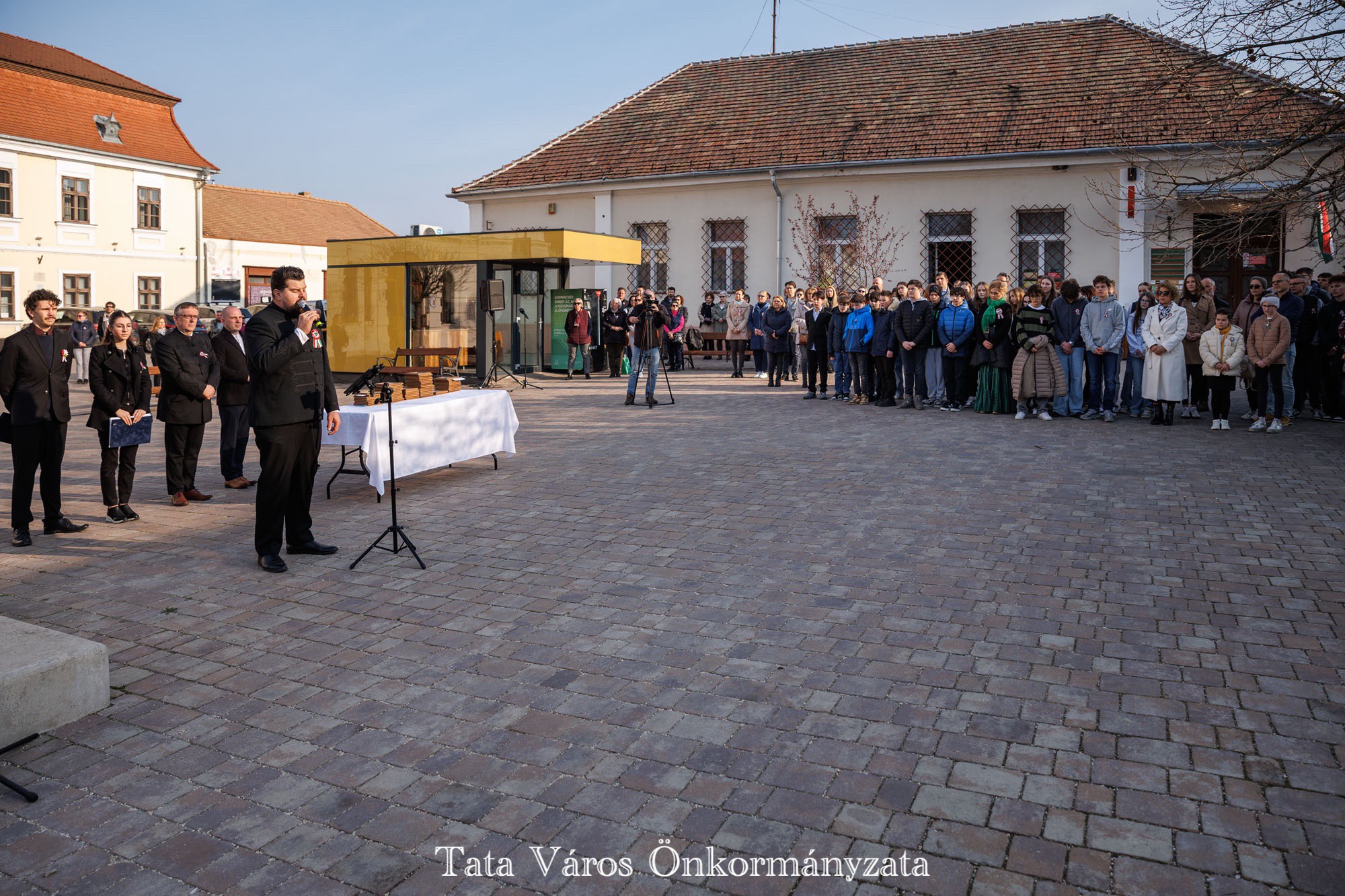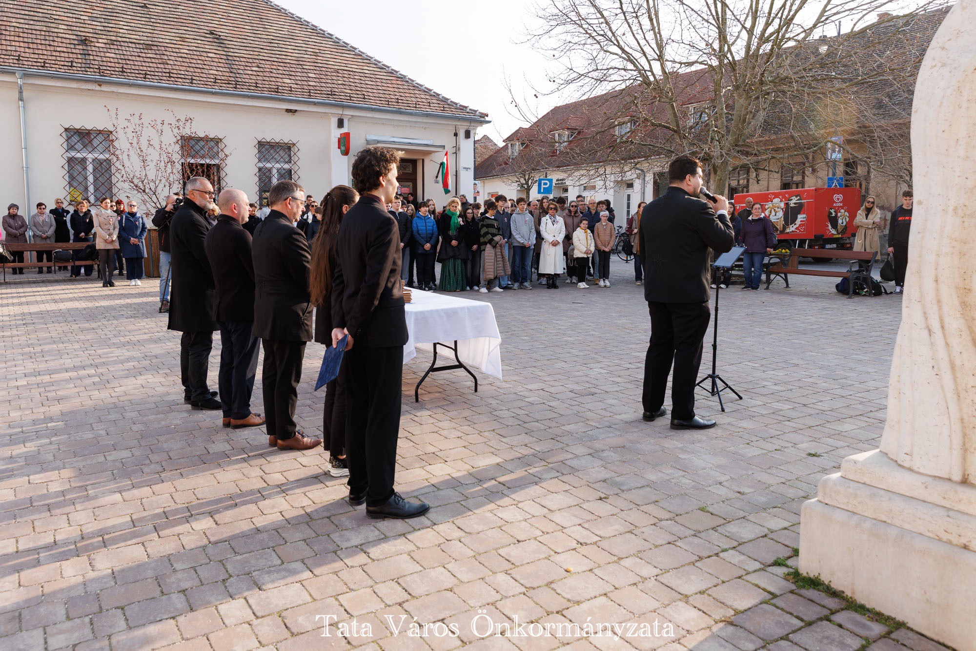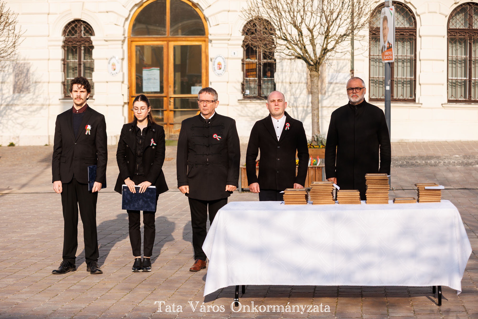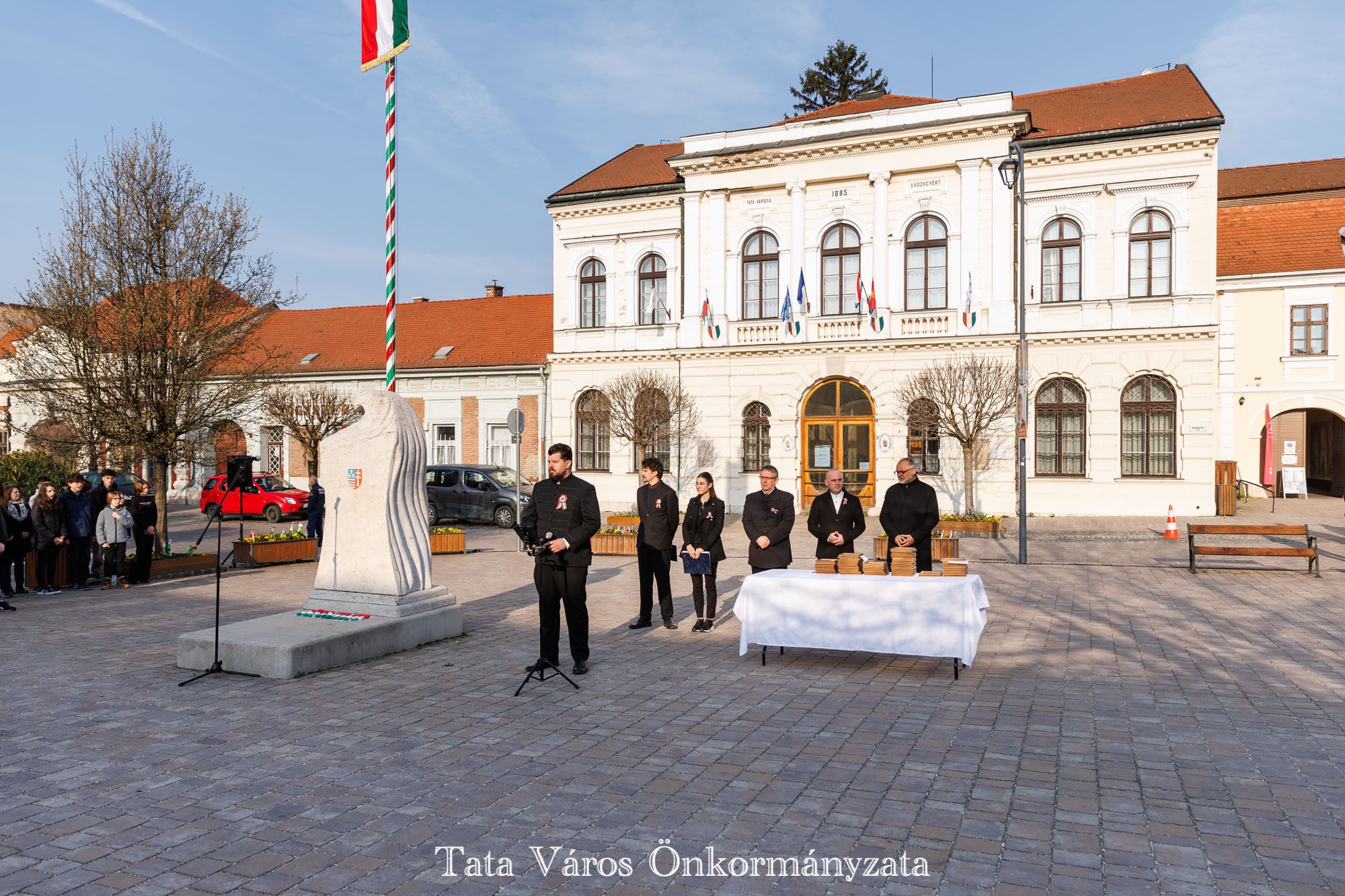 Tata Város Önkormányzata szervezésében idén is március 16-án, a magyar zászló és címer napjának reggelén adták át a tanulmányi versenyeken kiváló eredményeket elért tatai általános és középiskolásoknak, valamint felkészítőiknek városunk tanulmányi különdíját a Kossuth téren, az Országzászló-szobornál. Az elismerésben 32 diák és 22 tanár részesült.