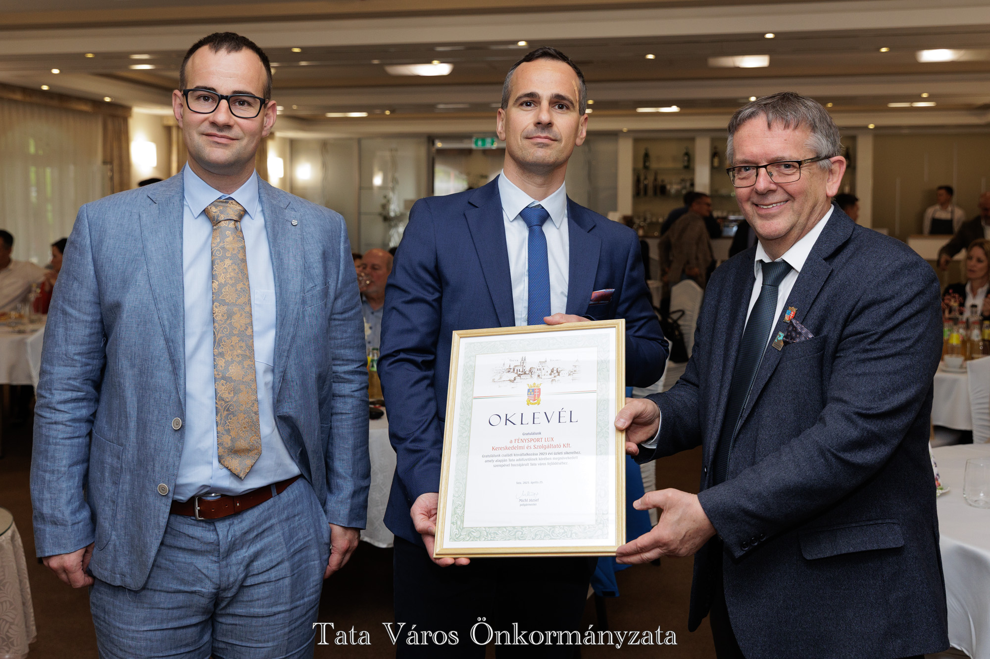 -A Fénysport Lux Kereskedelmi és Szolgáltató Kft.-t, családi kisvállalkozásuk 2023-as üzleti sikereiért, melyek alapján Tata adófizetőinek körében megnövekedett szerepükkel, hozzájárultak városunk fejlődéséhez.