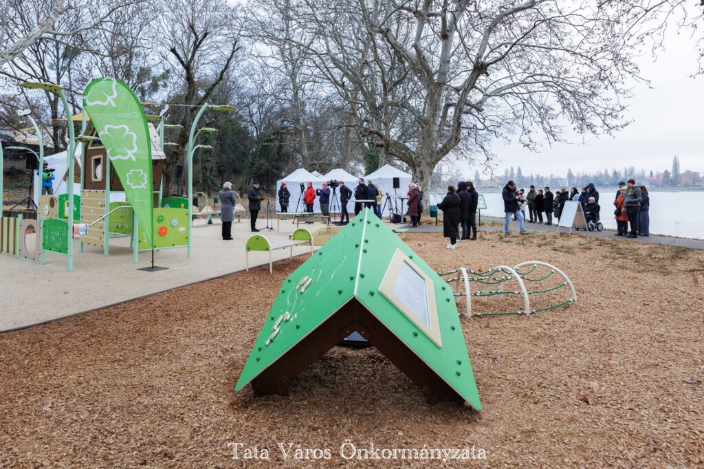 A Szerencsejáték Zrt. 2017 óta épít befogadó játszótereket azzal a céllal, hogy már gyerekkorban segítse a befogadó szemlélet kialakulását, és lebontsa a láthatatlan társadalmi korlátokat. Komárom-Esztergom vármegyében a tatai a második ilyen típusú játszótér, négy évvel ezelőtt Esztergomban épült hasonló. Bencsik János országgyűlési képviselő a december 2-i átadóünnepségen elmondta: – Tata egy igazi befogadó város, mely egyaránt fontosnak tartja a természeti és épített örökség megőrzését, továbbá az eltérő élethelyzetben – köztük a fogyatékossággal – élők elfogadását, és a róluk történő gondoskodást. Ez a közösségi háló most egy újabb elemmel bővülhet, s a Szerencsejáték Zrt. felajánlásának köszönhetően már nemcsak az Öreg-tó tóvárosi oldalán, hanem a túloldalon is várja a családokat egy korszerű és biztonságos játszótér.