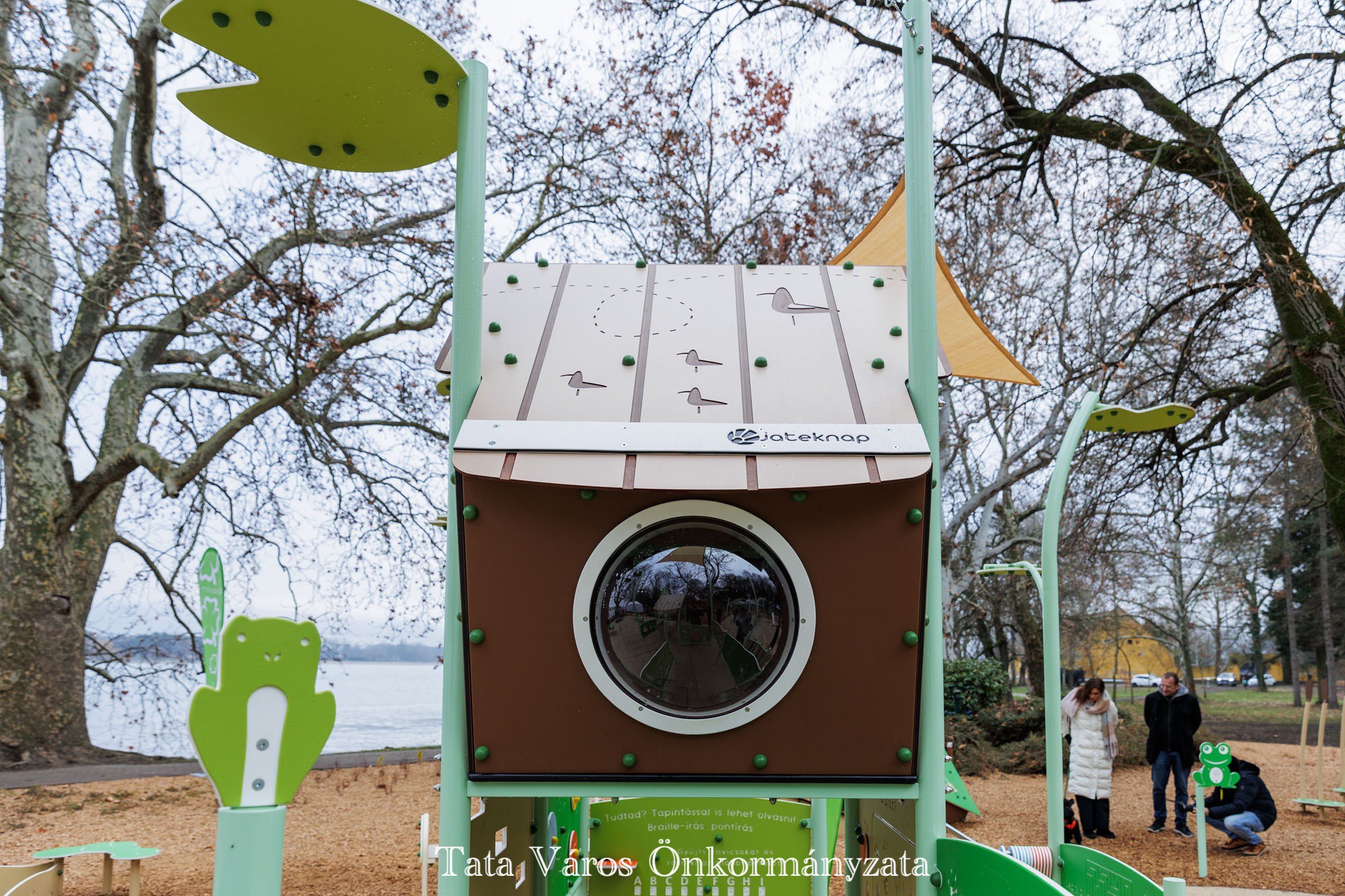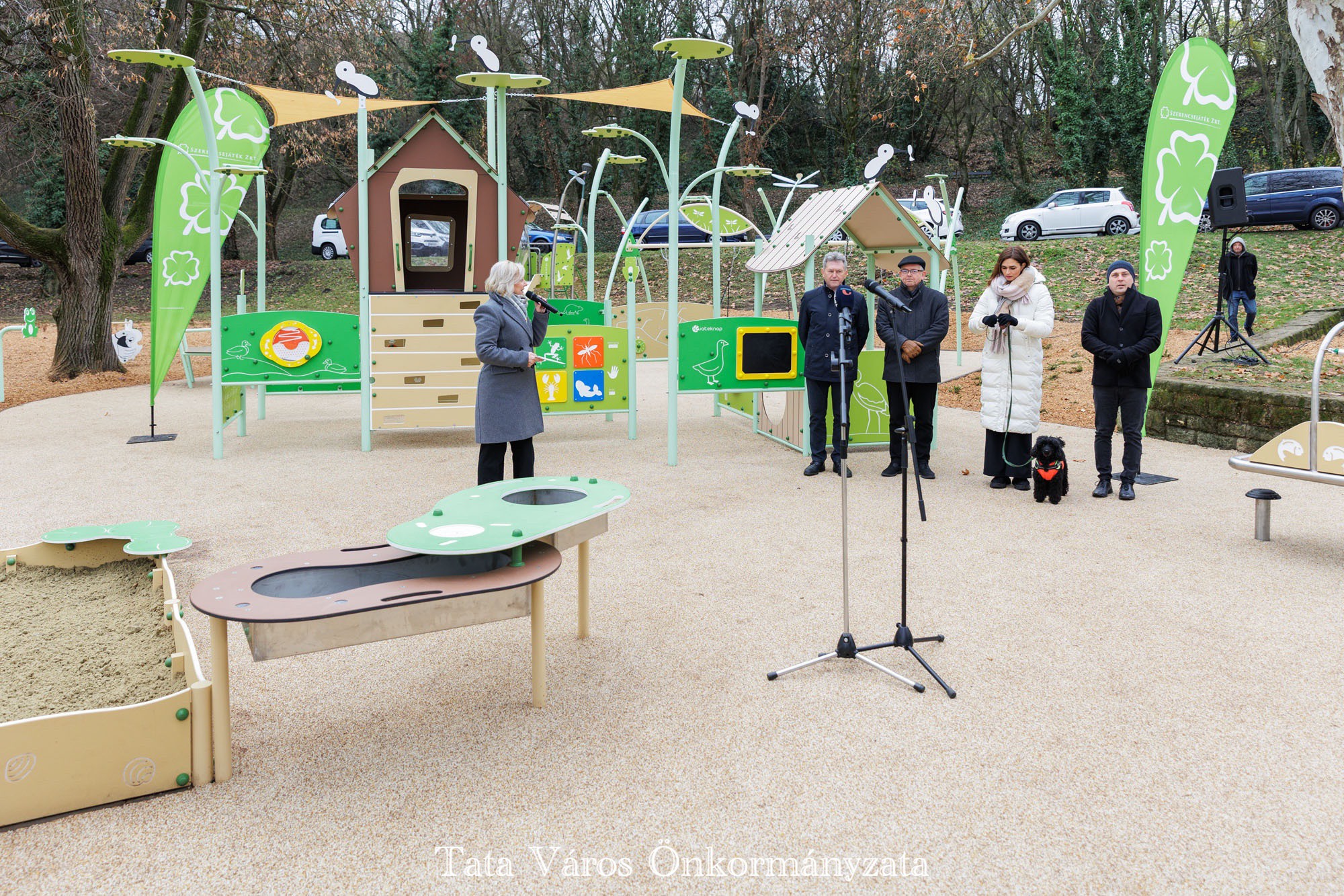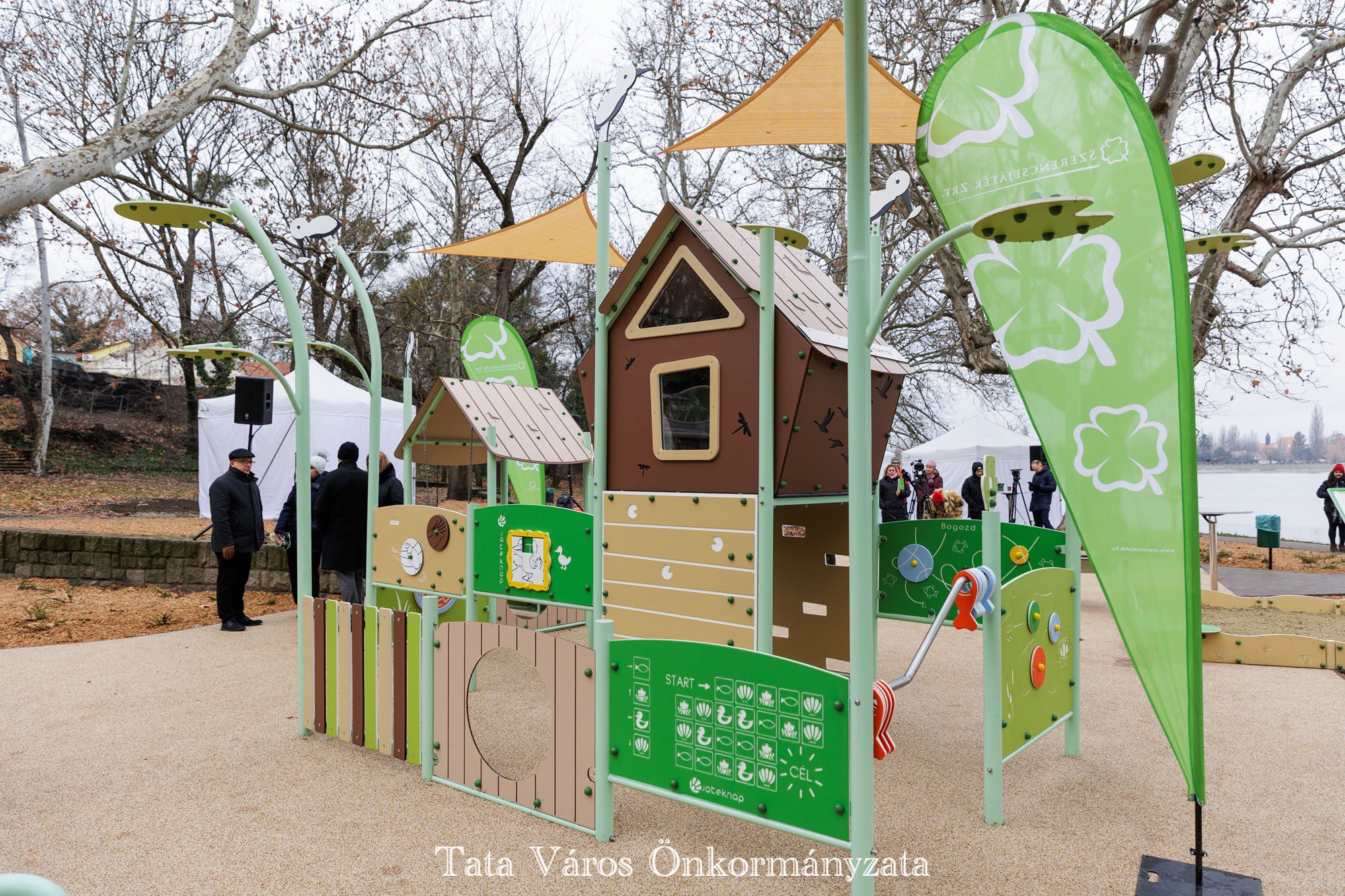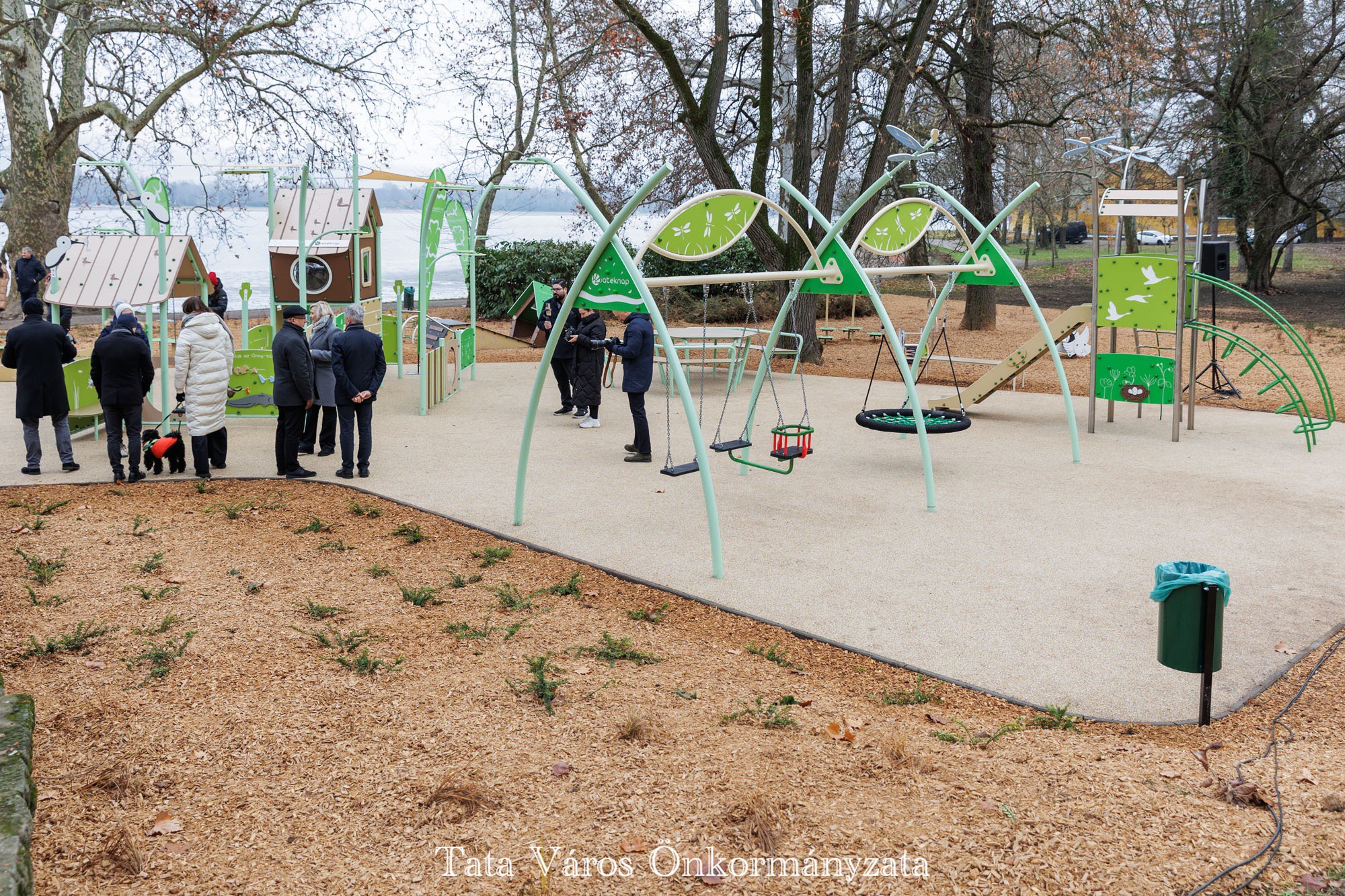 A Szerencsejáték Zrt. 2017 óta épít befogadó játszótereket azzal a céllal, hogy már gyerekkorban segítse a befogadó szemlélet kialakulását, és lebontsa a láthatatlan társadalmi korlátokat. Komárom-Esztergom vármegyében a tatai a második ilyen típusú játszótér, négy évvel ezelőtt Esztergomban épült hasonló. Bencsik János országgyűlési képviselő a december 2-i átadóünnepségen elmondta: – Tata egy igazi befogadó város, mely egyaránt fontosnak tartja a természeti és épített örökség megőrzését, továbbá az eltérő élethelyzetben – köztük a fogyatékossággal – élők elfogadását, és a róluk történő gondoskodást. Ez a közösségi háló most egy újabb elemmel bővülhet, s a Szerencsejáték Zrt. felajánlásának köszönhetően már nemcsak az Öreg-tó tóvárosi oldalán, hanem a túloldalon is várja a családokat egy korszerű és biztonságos játszótér.