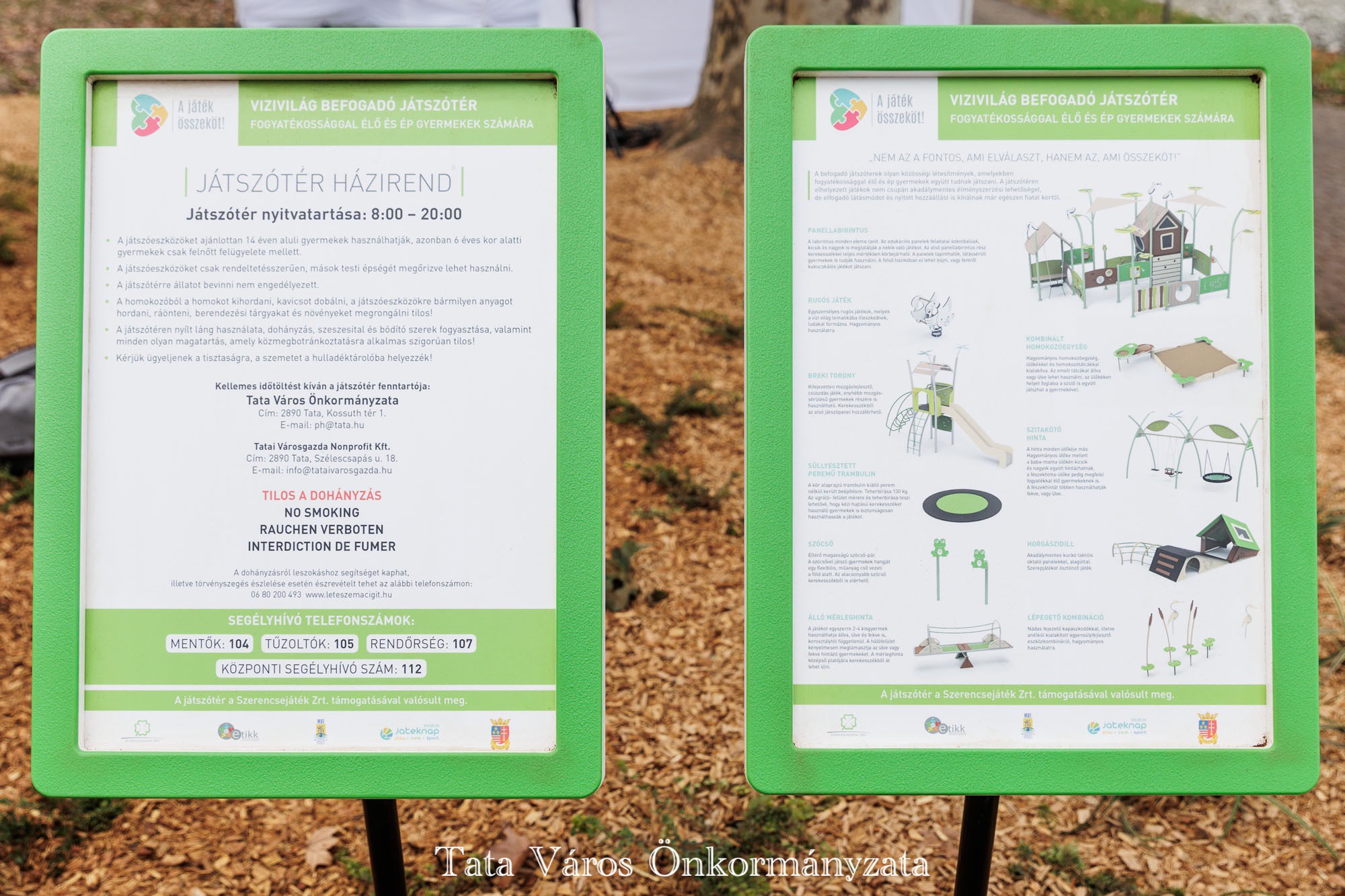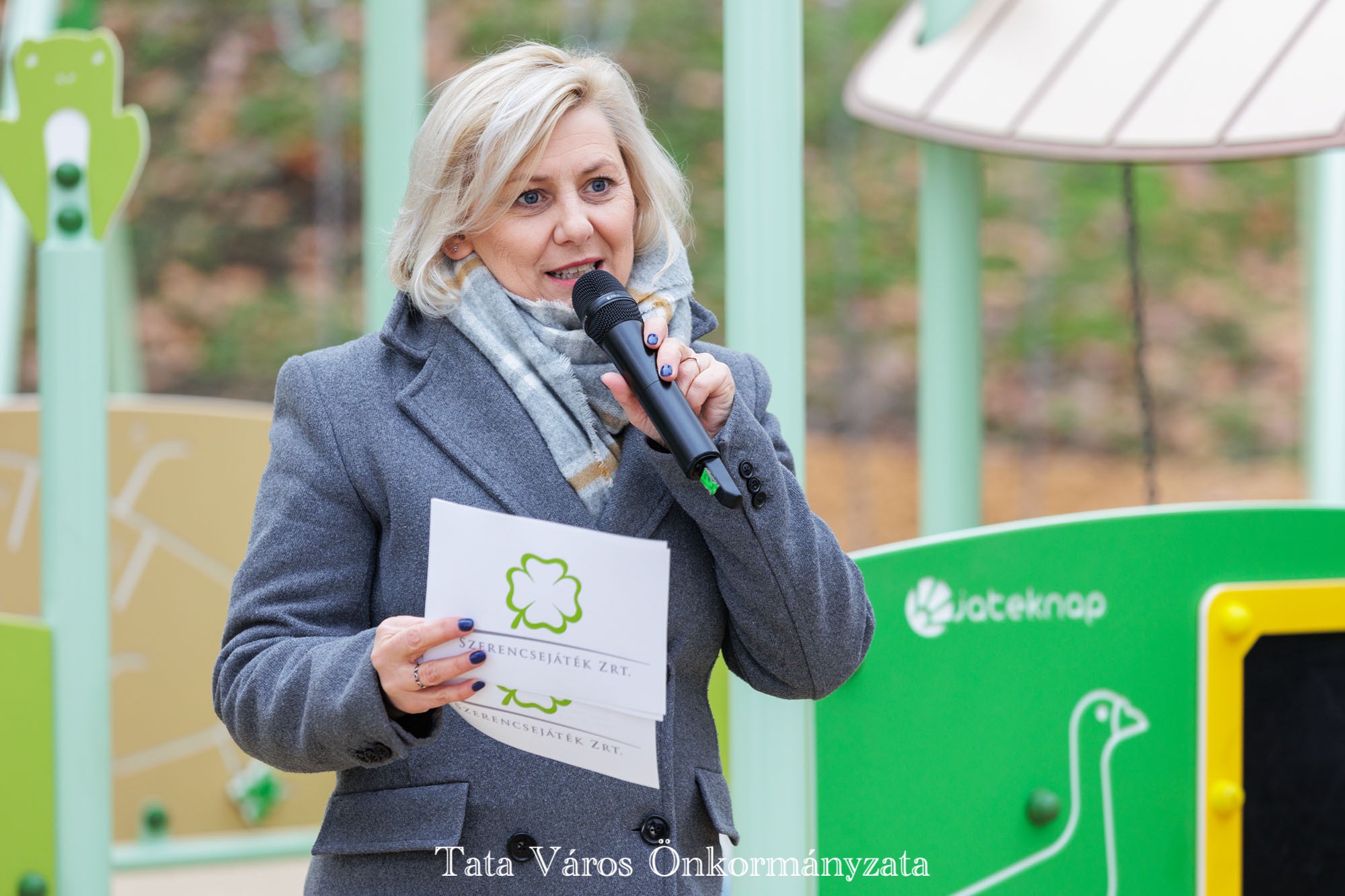 Tata legújabb játszóterét Fördős-Hódy Erzsébet rehabilitációs szakmérnök és Papp Mihály tapasztalati szakértő mutatta be, az eseményen részt vett a „Játék összeköt!” kezdeményezés támogatója, Drávucz Rita világ és Európa-bajnok, olimpikon vízilabdázó, aki érintett szülőként segíti a fogyatékossággal élők minél szélesebb körű integrációját. A programhoz kapcsolódó további információkról a https://rolunk.szerencsejatek.hu/hu/a-jatek-osszekot weboldalon tájékozódhatnak az érdeklődők.