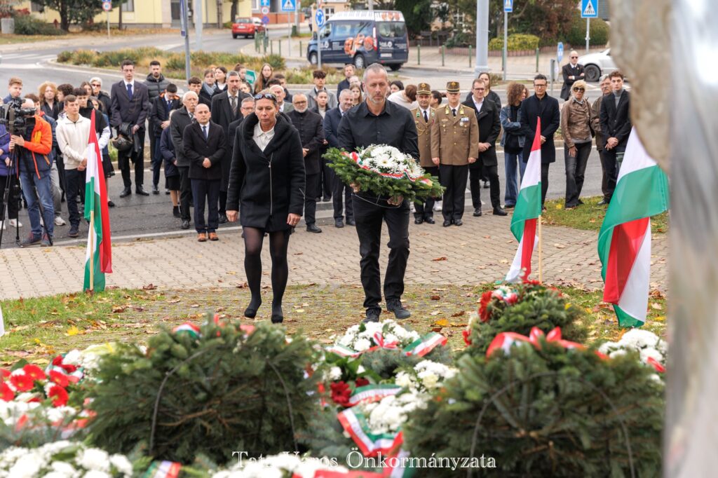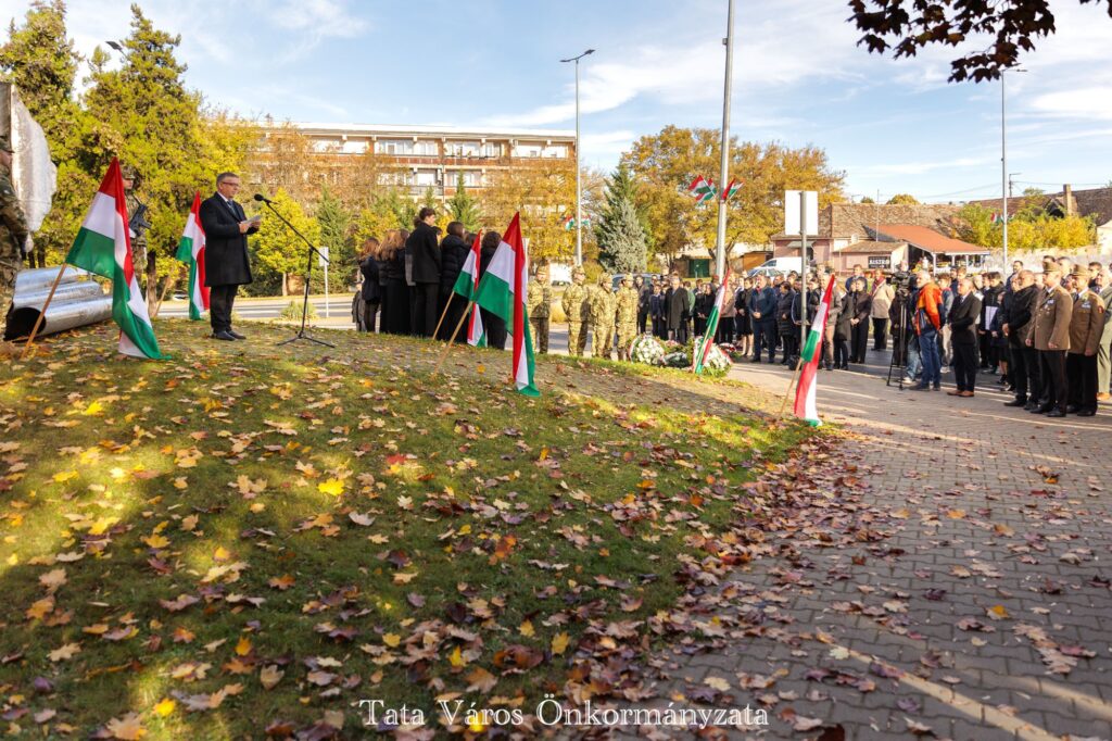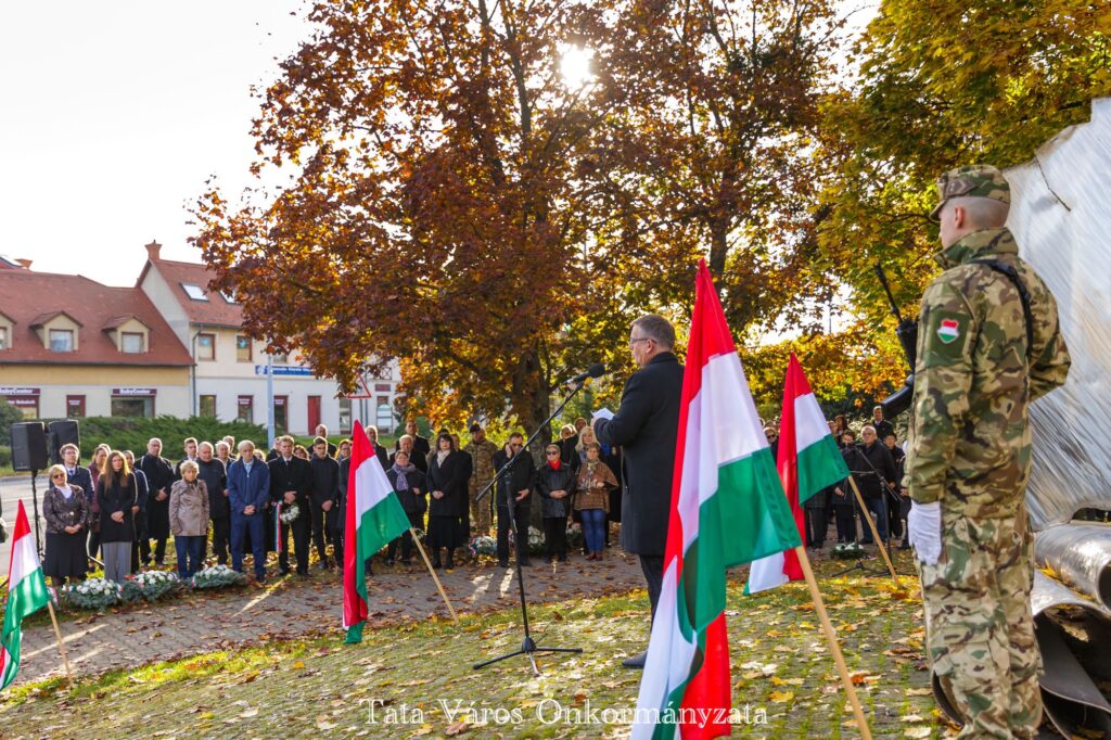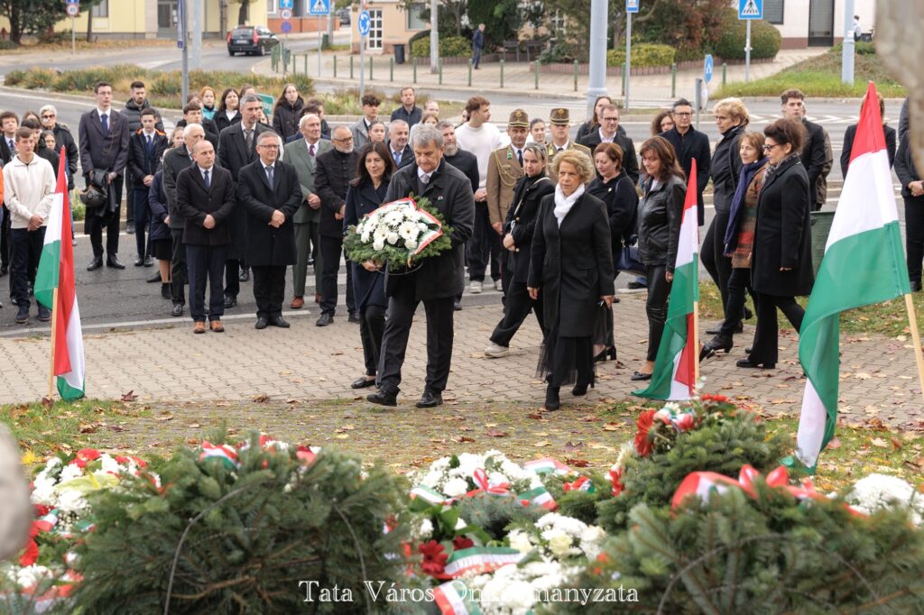 Tata Város Önkormányzata és a Tatai Városkapu Közhasznú Zrt. közös szervezésében rendeztek ünnepi megemlékezést az 1956-os forradalom és szabadságharc évfordulója alkalmából a tóvárosi körforgalomnál lévő emlékműnél, október 23-án délelőtt.