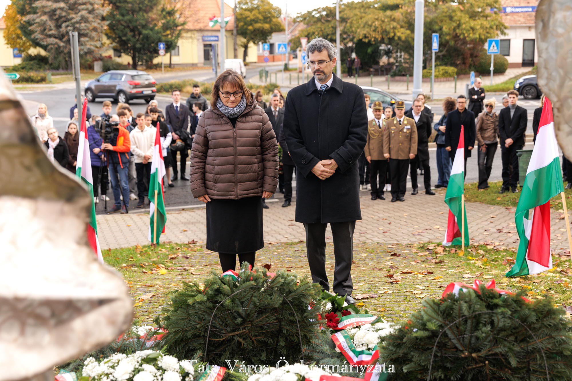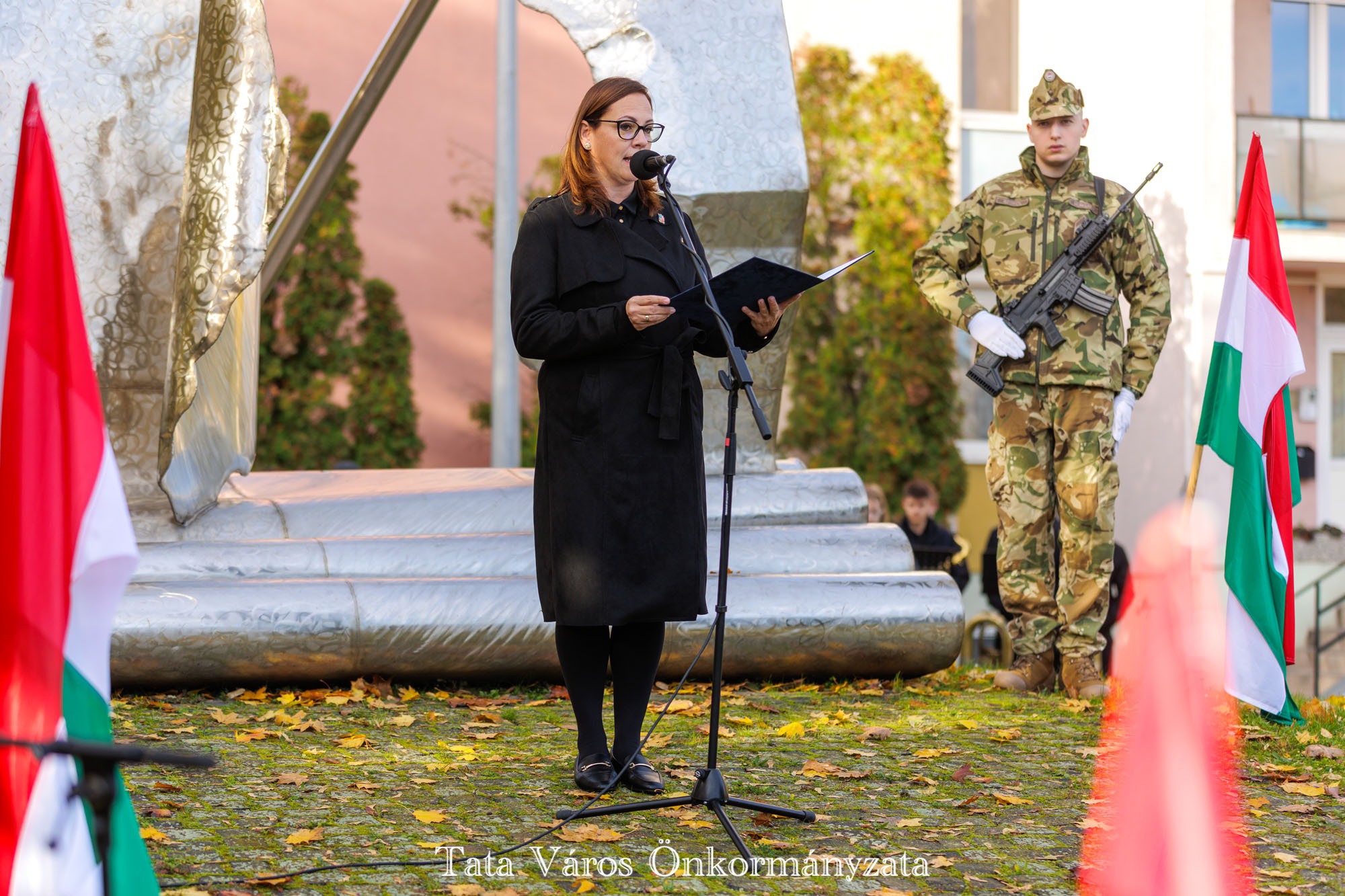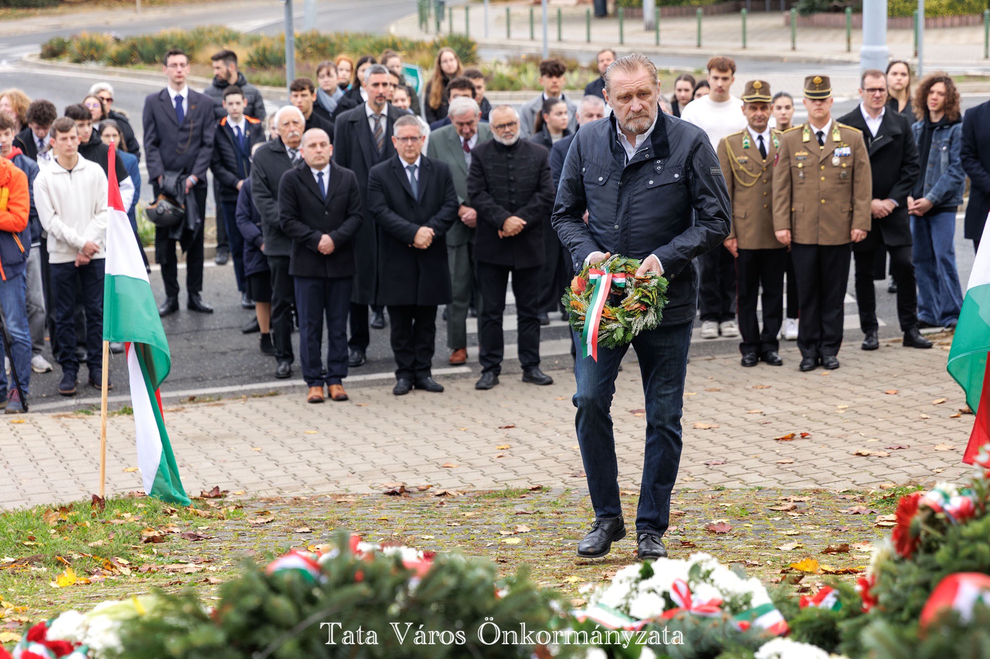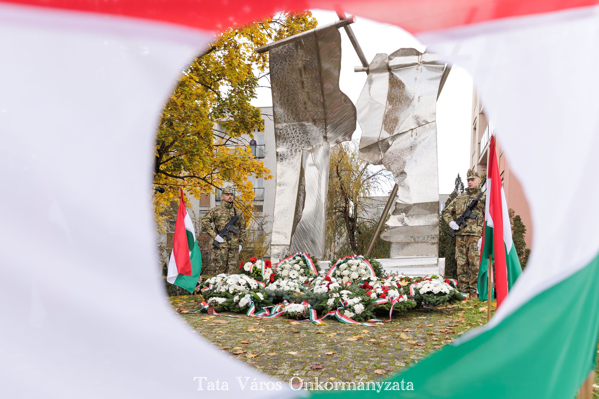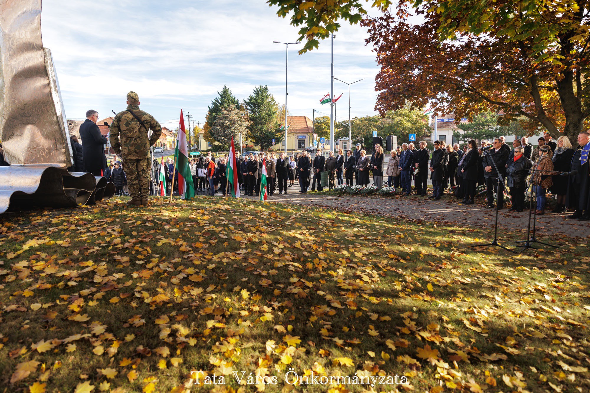 Tata Város Önkormányzata és a Tatai Városkapu Közhasznú Zrt. közös szervezésében rendeztek ünnepi megemlékezést az 1956-os forradalom és szabadságharc évfordulója alkalmából a tóvárosi körforgalomnál lévő emlékműnél, október 23-án délelőtt.