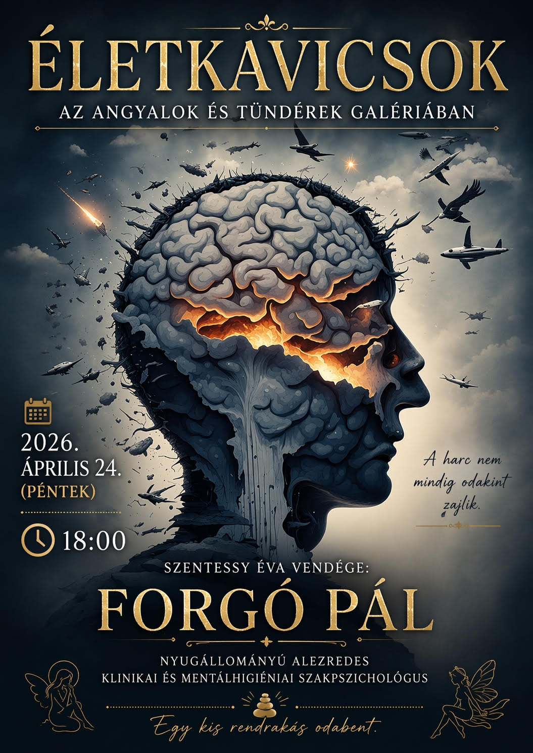 Április 24-én újra Életkavicsok est várja az érdeklődőket az Angyalok és Tündérek Galériában, ahol a vendég ezúttal Forgó Pál nyugállományú alezredes, klinikai és mentálhigiéniai szakpszichológus lesz 18:00 órától.
