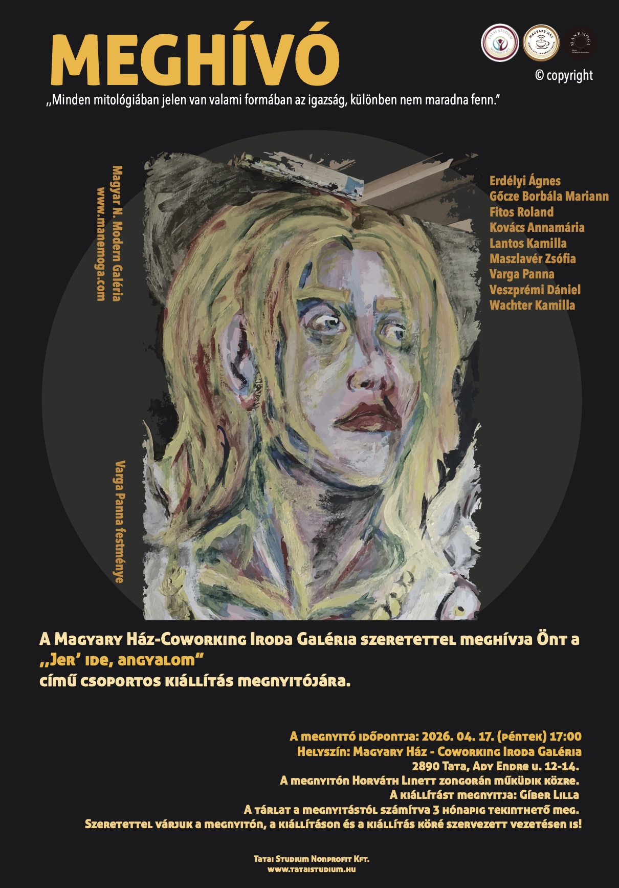 Új kiállítás nyílik a Magyary Házban, a Coworking Galériában, ahol április 17-én 17:00 órakor rendezik a „Jer’ ide, angyalom” című csoportos kiállítás megnyitóját.