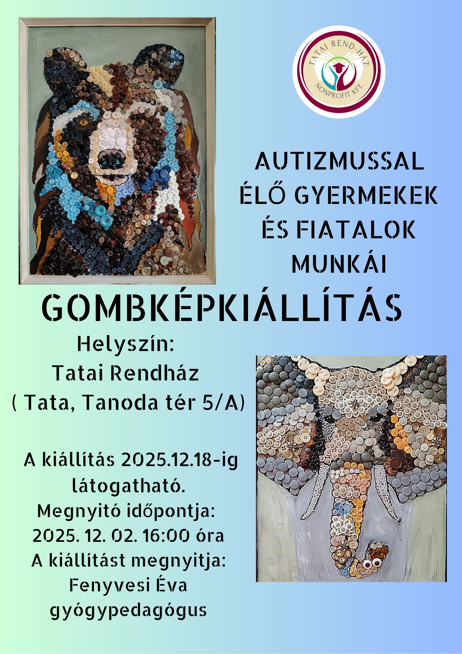 Autizmussal élő gyermekek és fiatalok munkáiból nyílik kiállítás a Piarista Rendházban december 2-án, 16:00 órakor. A kiállítást Fenyvesi Éva gyógypedagógus nyitja meg, a tárlat december 18-ig tekinthető meg.