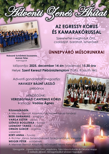 Az Egressy Kórus és Kamarakórus ebben az évben is Adventi Zenés Áhítatra várja az érdeklődőket december 14-én vasárnap 15 óra 30 perctől a Szent Kereszt Plébániatemplomba. A koncerten Havassy Bálint plébános osztja meg adventi gondolatait, és közreműködik a Veresegyházi Cantemus kórus.