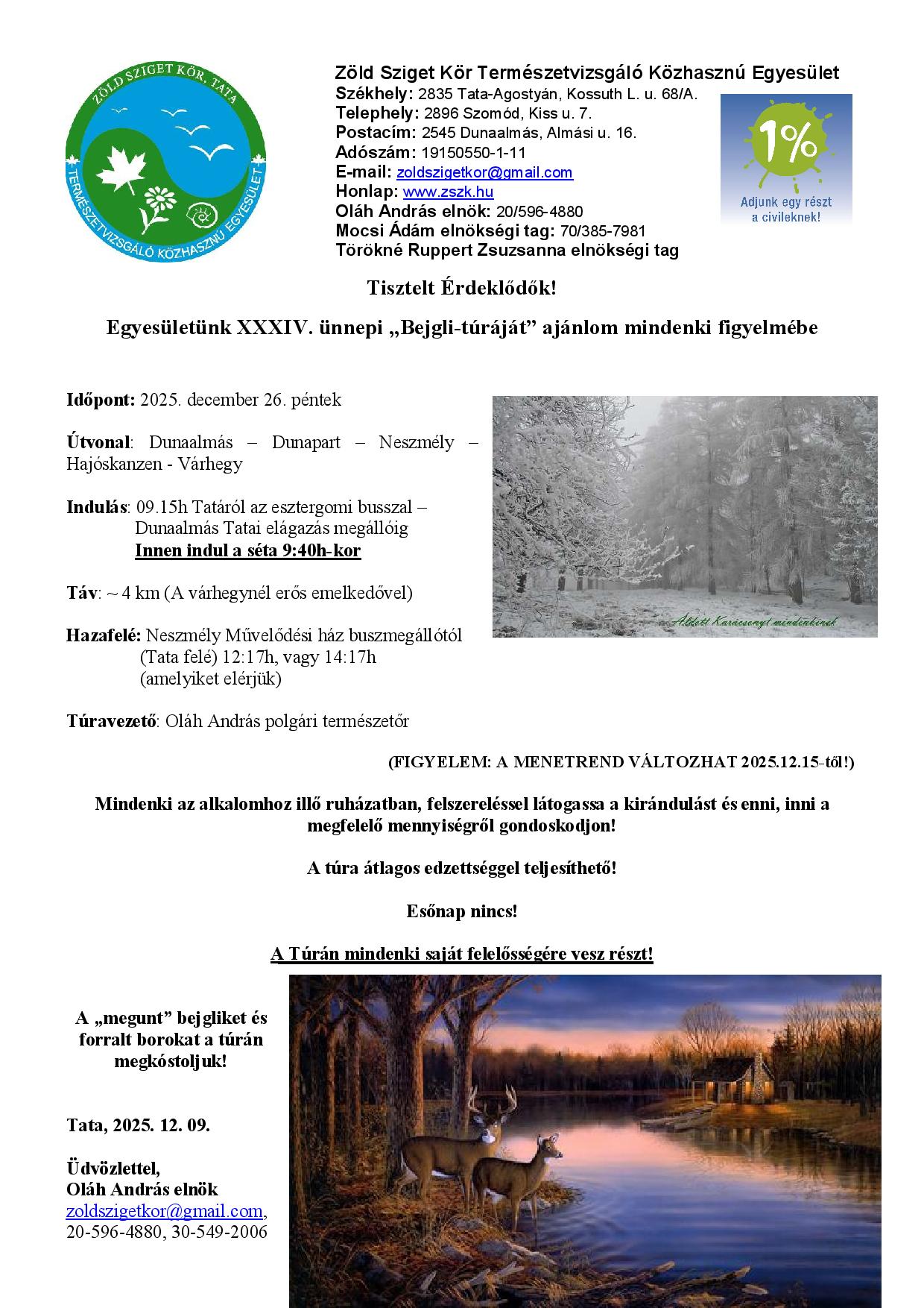 A Zöld Sziget Kör Egyesület idén is megszervezi hagyományos év végi bejgli-túráját, december 26-án pénteken, a Dunaalmás – Dunapart – Neszmély –Hajóskanzen – Várhegy útvonalon. További részletek a plakáton.