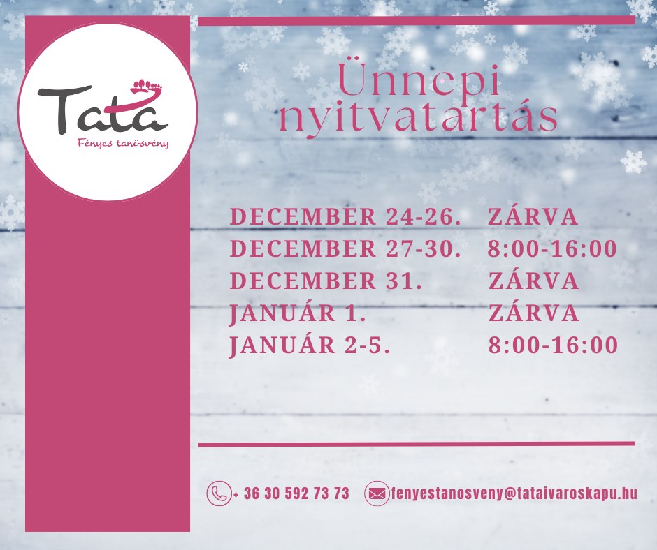 Év végi nyitvatartás a Tatai Városkapu Zrt. létesítményeiben