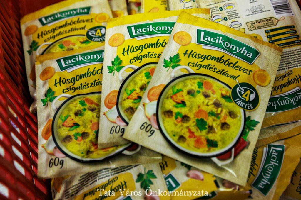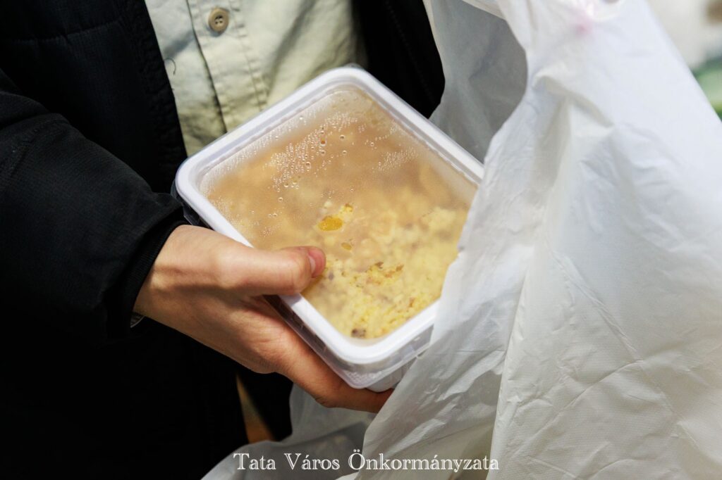 Az adományok között szerepel meleg étel, konzervek, tartós száraz élelmiszerek, heti 250 adag, 144 családnak. Az ételosztás helyszínén Michl József polgármester úgy nyilatkozott: – Nagy köszönet jár Vámosiné Illés Márta önkormányzati kapcsolattartónak a szervező munkáért, valamint Bondor Lajosnak azért, hogy a korábbi ötletét továbbfejlesztve évek óta rendszeresen megtehetjük ezt a segítségnyújtást decemberben és januárban. Az a szeretet, amellyel a tatai cégek, vállalkozások az ügy mellé állnak rendkívül tiszteletreméltó, hálás köszönet a szponzorainknak is, reméljük, hogy ezzel az összefogással tudunk egy kis örömet okozni mindazoknak, akiknek jól jön a segítség.