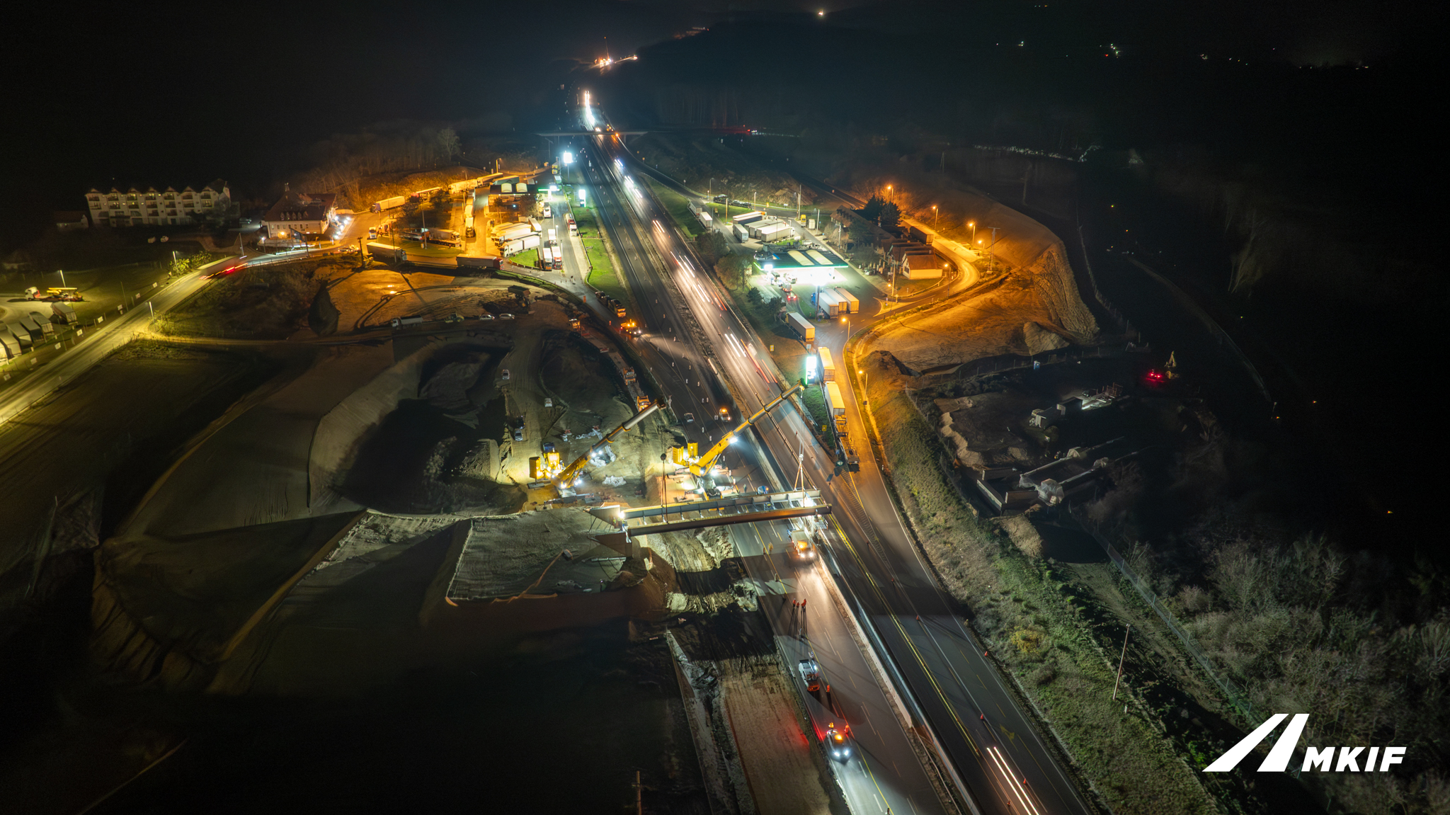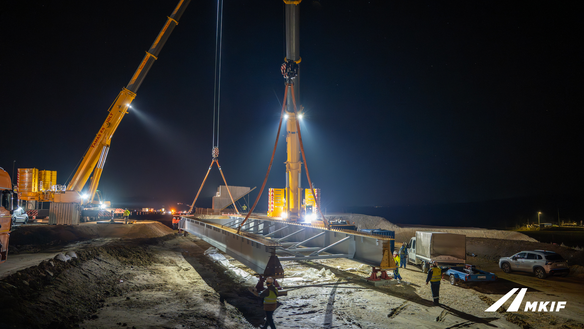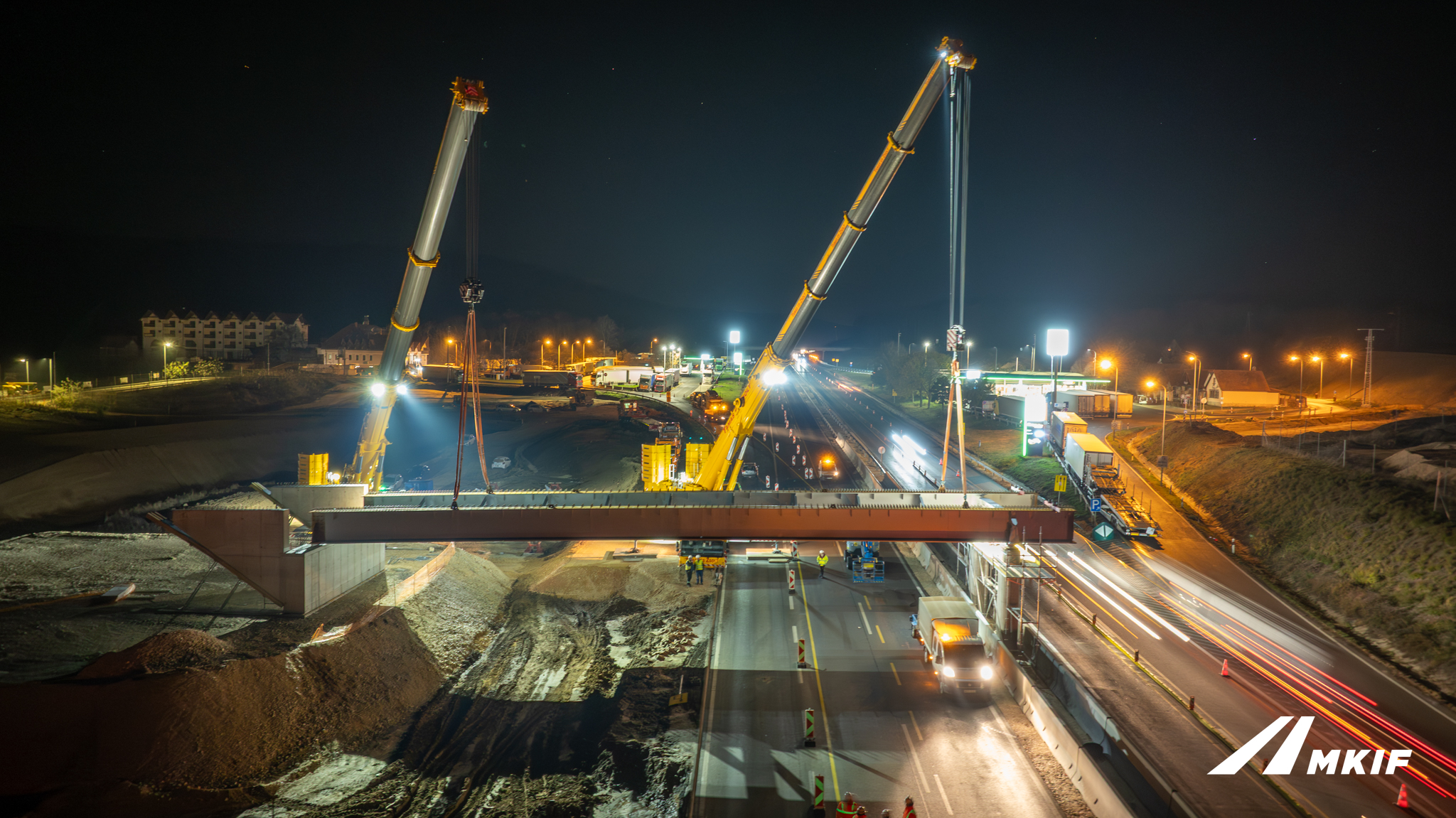 December-1-re és 2-ra virradó éjszaka emelték be az új, most épülő híd elemeit az M1-es autópályán Óbaroknál – tájékoztatott az MKIF Zrt., az M1-es autópálya bővítési munkálataival kapcsolatosan.