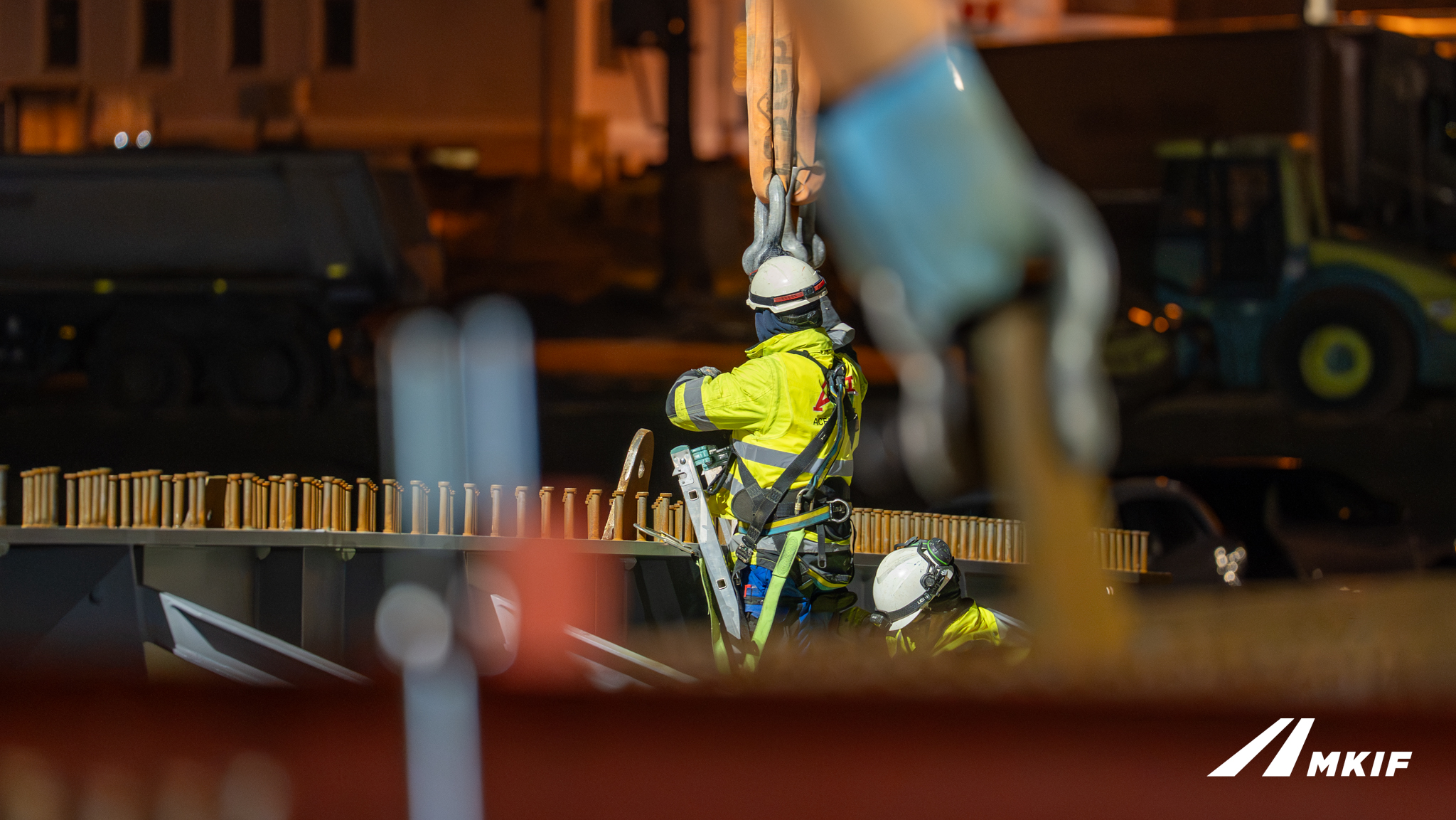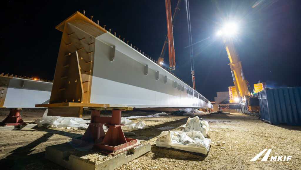 A 70 méter hosszú, 6,5 méter széles acélszerkezetet egy 650, és egy 450 tonnás daru illesztette a helyére 2 részletben 2 éjszaka alatt. A 83 és 56 tonnás szerkezeteket egy ún. hidraulikus sajtóra helyezték. A folytatásban a napokban összehegesztik a 2 elemet, majd a hidraulikus szerkezettel ráengedik a 139 tonnás hidat a végleges sarura, ezt követően pedig a híd zsaluzásával folytatódik a munka.
