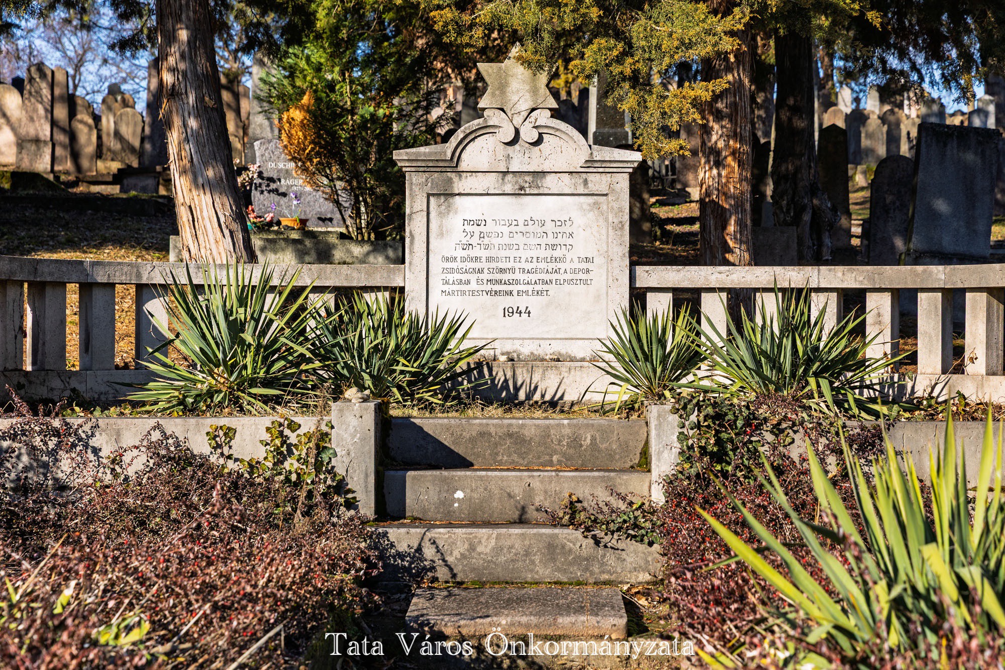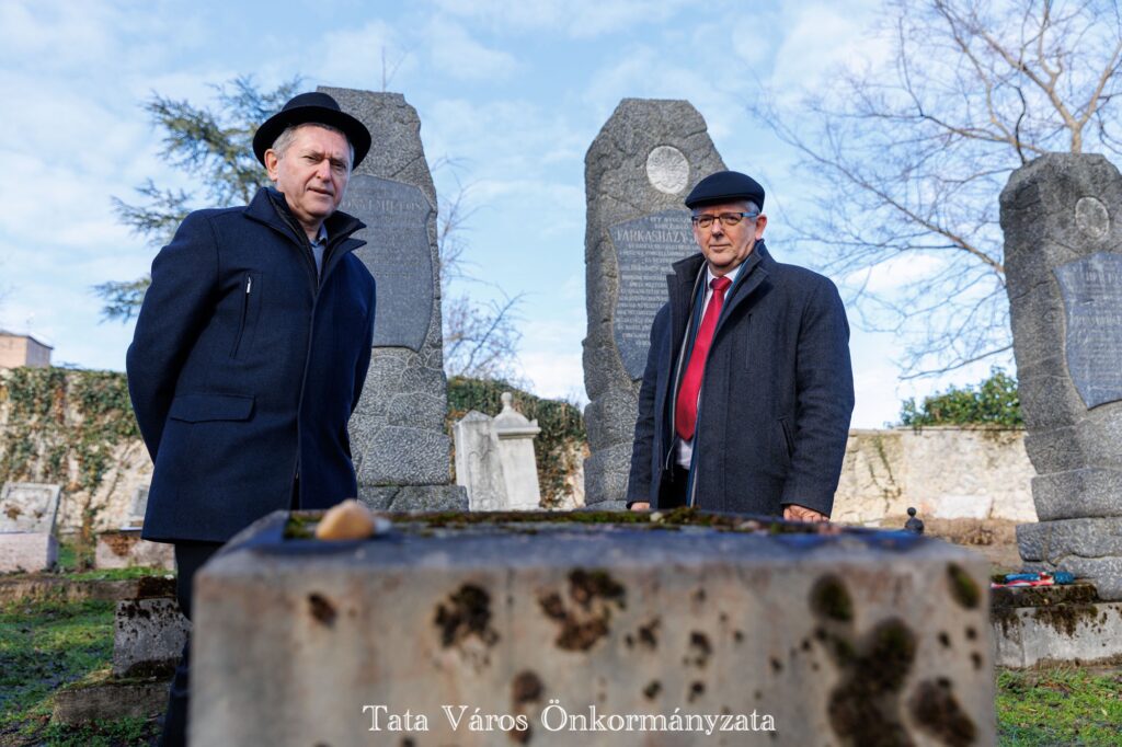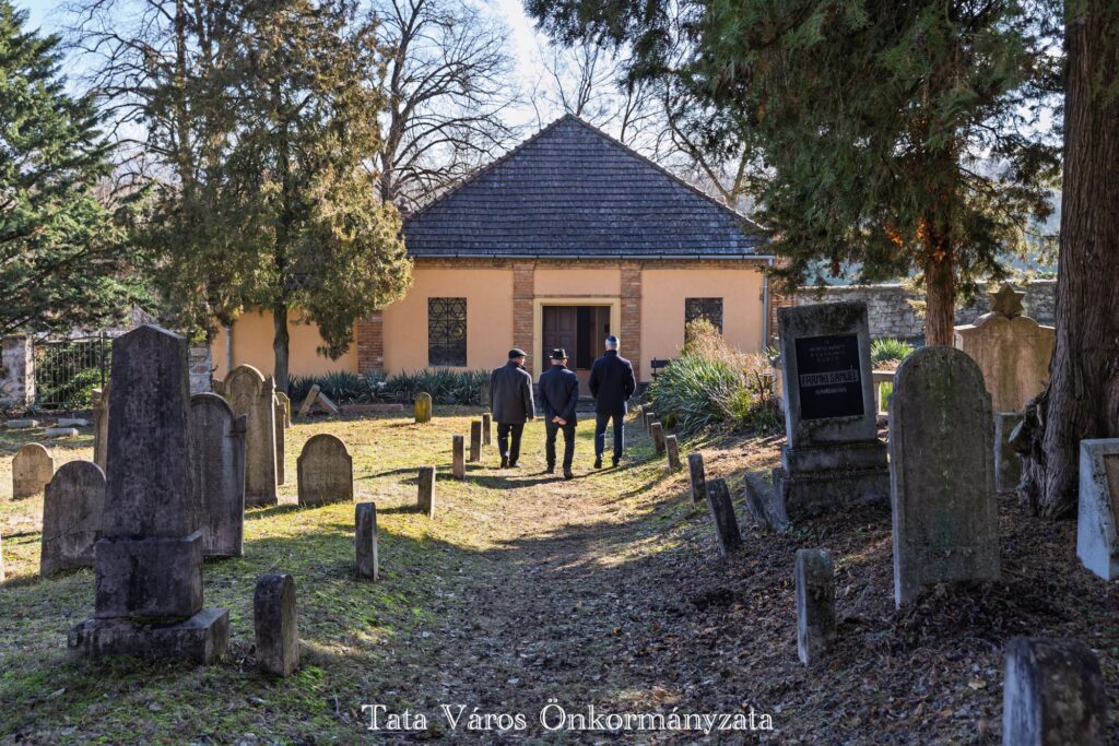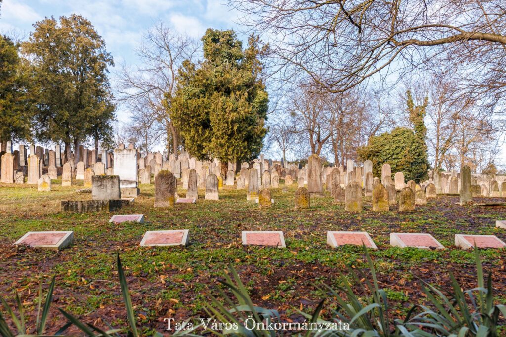 A tatai zsidó temető az egyik legrégibb, máig is működő hazai sírkert, amelyet a 18. század első felében alapítottak. A magyarországi zsidó temetők közül itt található a legtöbb, 18. században keletkezett síremlék, valamint az ország legrégebbi (1740), még eredeti helyén álló sírköve is. 2023-ban zárult le az a tudományos kutatás, melynek köszönhetően a Goldberger Alapítvány kezdeményezésére elkészült a temető valamennyi síremlékét leíró, az ott nyugvó személyek adatait feltáró kataszter és adattár. Egy könyv is született a temető sírfeliratainak kutatásáról a Kuny Domokos Múzeum kiadásában, „Lelked legyen bekötve az élet kötésébe – Megéledő sírfeliratok a tatai zsidó temetőben” címmel. Ahogyan arról a közelmúltban beszámoltunk, idén folytatódik a tatai zsidó temető megújítása, tavaly december 18-án szállították ugyanis el az ottani, Fischer Mózes Áronhoz és családtagjaihoz kötődő kerámia fejköveket, melyek restaurálást követően kerülnek majd vissza a helyükre, a tervek szerint idén tavasszal.