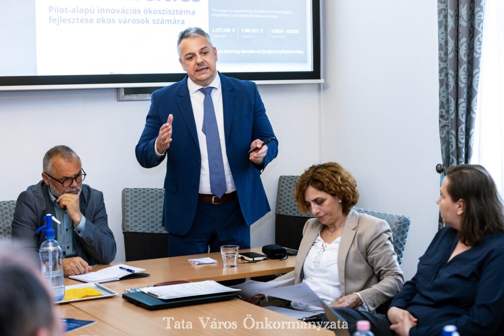 A City AI egy pilot program (próbaprojekt, kísérleti program), amelyben kipróbálják a módszertant, melynek a Tatai Közös Önkormányzati Hivatal „élő laborként” biztosít helyet, ezzel saját tapasztalatot is szerezve. Dr. Horváth József jegyző, a projekt tatai vonatkozásával kapcsolatban elmondta: – Tata nagyon sok szempontból úttörő település, elég például a Ramsari Város címre, vagy a tűzijátékokat korlátozó helyi rendeletre gondolni, tehát számos dologban próbálunk élen járni. Az ebben a projektben való részvételünket a kor kihívásai inspirálták, hiszen ma már rendkívül nagy mennyiségű információval találjuk szemben magunkat nap mint nap, az internet elterjedt, az informatika pedig óriási lépésekben fejlődik. Mindez arra az irányba vezeti a Tatai Közös Önkormányzati Hivatalt, hogy újabb megoldásokban gondolkodjon és minél innovatívabban működjön. Ez a projekt mind a hivatal, mind pedig az önkormányzat döntéshozatali lehetőségeit támogatni fogja, ugyanis egy információs bázis felépülésének motorjaként, mesterséges intelligencia-alapú elemzőként nyújthat segítséget a számos helyről beérkező, nagyon nagy mennyiségű adathalmazunk feldolgozásában, elemzésében.