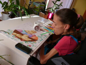 Szabó Szonja tagja volt a Szájjal és Lábbal Festők Nemzetközi Szervezetének, képeslapokon, naptárakban is láthatóak alkotásai. Nemcsak Magyarországon, hanem Hollandiába, Prágában, és Gerlingenben is kiállították a képeit, egyik kiállítása kapcsán a venezuelai nagykövet is meglátogatta. A Veszélyben a csend világa, a Diákszövi Alapítvány országos gyermekrajz pályázatokon, a Magyar Rákellenes Liga kiírásán, és a Magyar Posta Bélyegpályázatán nyert országos díjakat, tehetségét a Magyar Napenergia Társaság is elismerte, s az ő illusztrációi díszítik Tos Zoltán mozgássérült verses füzetét.
