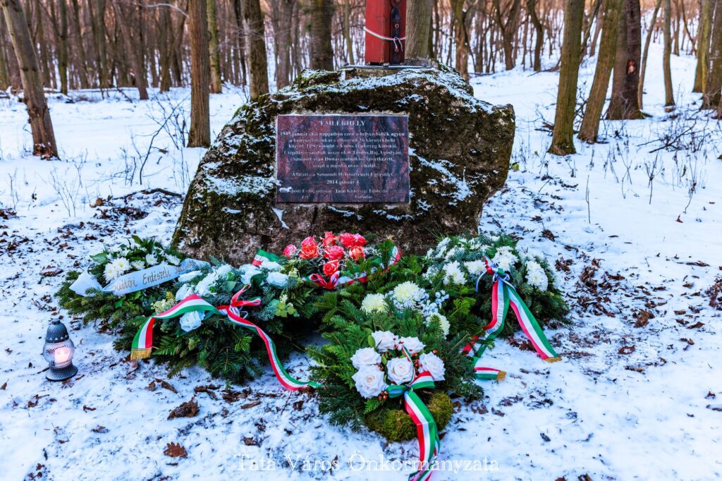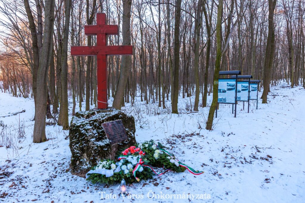A IV. SS-páncéloshadtest 1945. január 1-én indította meg a Konrád hadműveletet azzal a céllal, hogy a Vértes és Budapest között lévő szovjet katonai erőket szétzilálják, valamint kialakítsák a fővárossal való kapcsolatot. A német haderő Komáromnál vagonírozott ki, majd Dunaalmás, Agostyán, és Tarján irányába indított támadást. A térségben a szovjetek által elfoglalt területekről „málenkij robotra” szedték össze a lakosságot, január 1-én a szomódiakat 147 környékbelivel Agostyán felé terelték, Dunaalmás és Neszmély lakóit szintén összeterelték, és Süttő irányába, Bikol pusztán át gyalog Tardos felé hajtották útépítésre. Ők estére szintén csak Agostyánig jutottak. Január 2-án hajnalban az agostyáni gyűjtőtáborból közel ezer foglyot szabadítottak ki az előre nyomuló német katonák. A kiszabadított foglyok hazaindulva azonban nem tudták, hogy Szomód, Dunaszentmiklós és Neszmély dombjait, erdeit még az oroszok ellenőrzik. A Vörös Hadsereg katonái újra fogságba ejtettek egy hazafelé igyekvő csoportot, január 2-án estére Dunaszentmiklósra terelték foglyaikat, akiket hajnalban tovább vezettek az erdő felé. A 26 magyar fogollyal január 3-án hajnalban végeztek a szovjet katonák. 2014-ben ennek a tragikus eseménynek állított emléket a kettős kereszttel a Tatai Kistérségi Társulás, a Budapesti Erdőgazdaság Süttői Erdészete és a Szomódi Helytörténeti Egyesület.