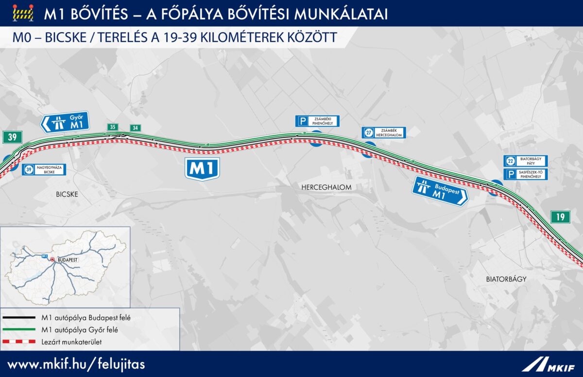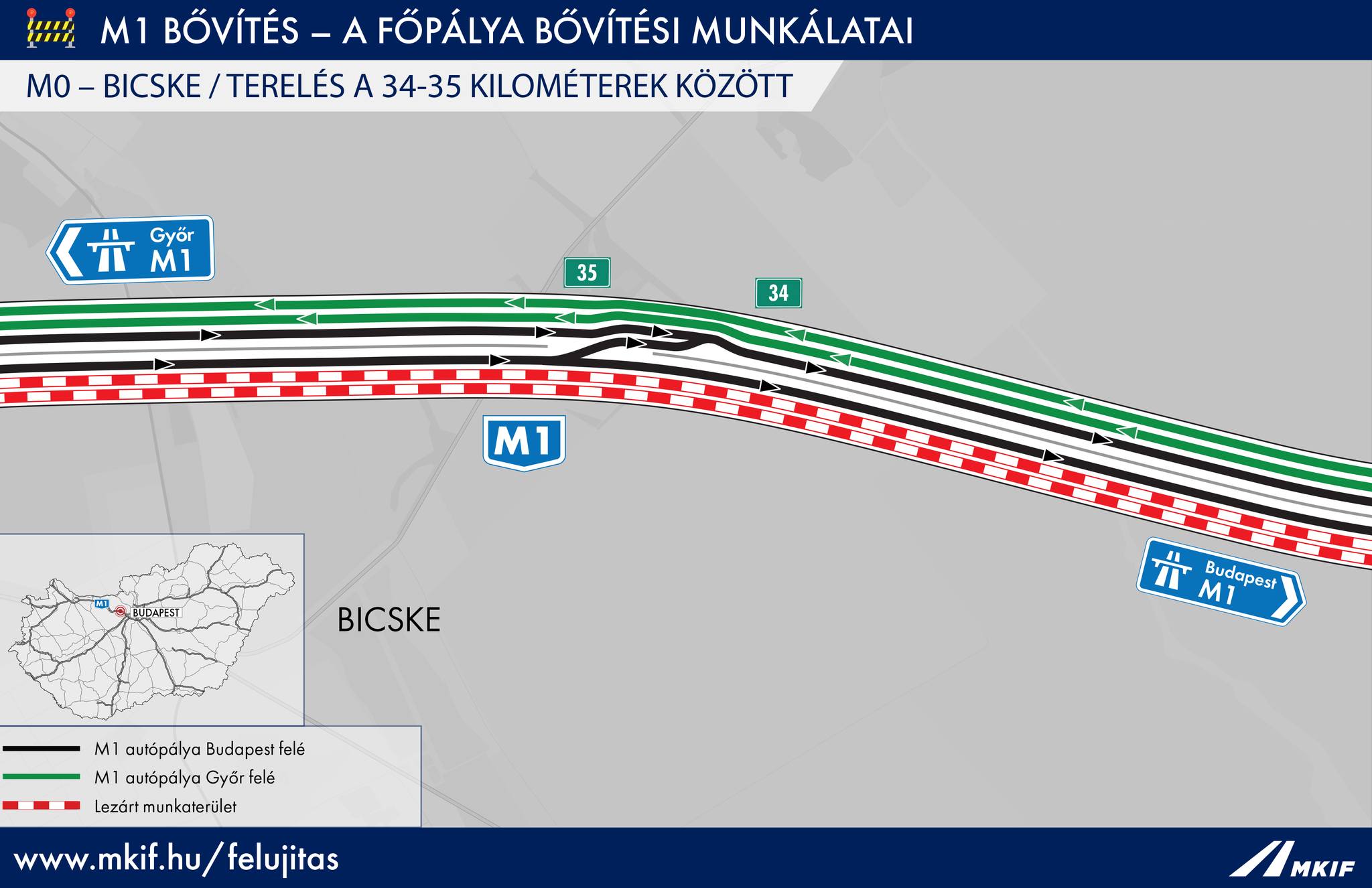 Új forgalmi rend lépett életbe az M1-es autópályán Bicske térségében április 14-én kora délutántól – adott tájékoztatást az MKIF Magyar Koncessziós Infrastruktúra Fejlesztő Zrt. az M1-es autópálya bővítésével kapcsolatosan.