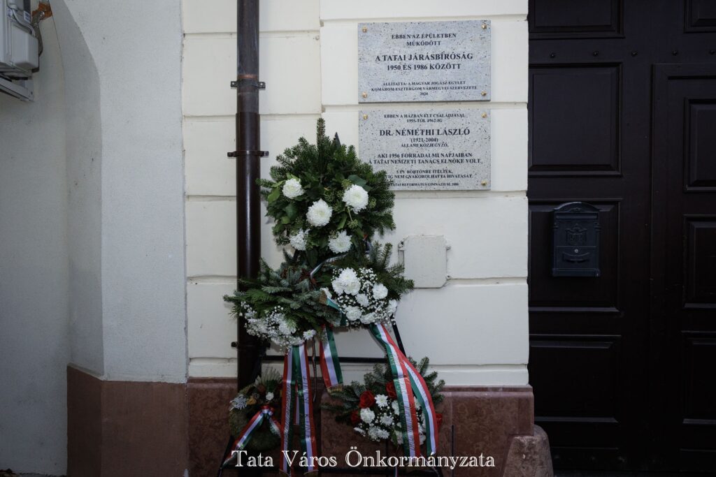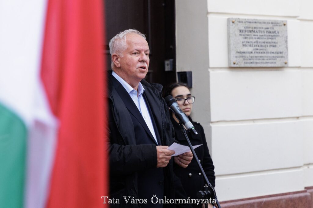 -dr. Némethi László emléktábláját a Tatai Református Gimnáziumnál,